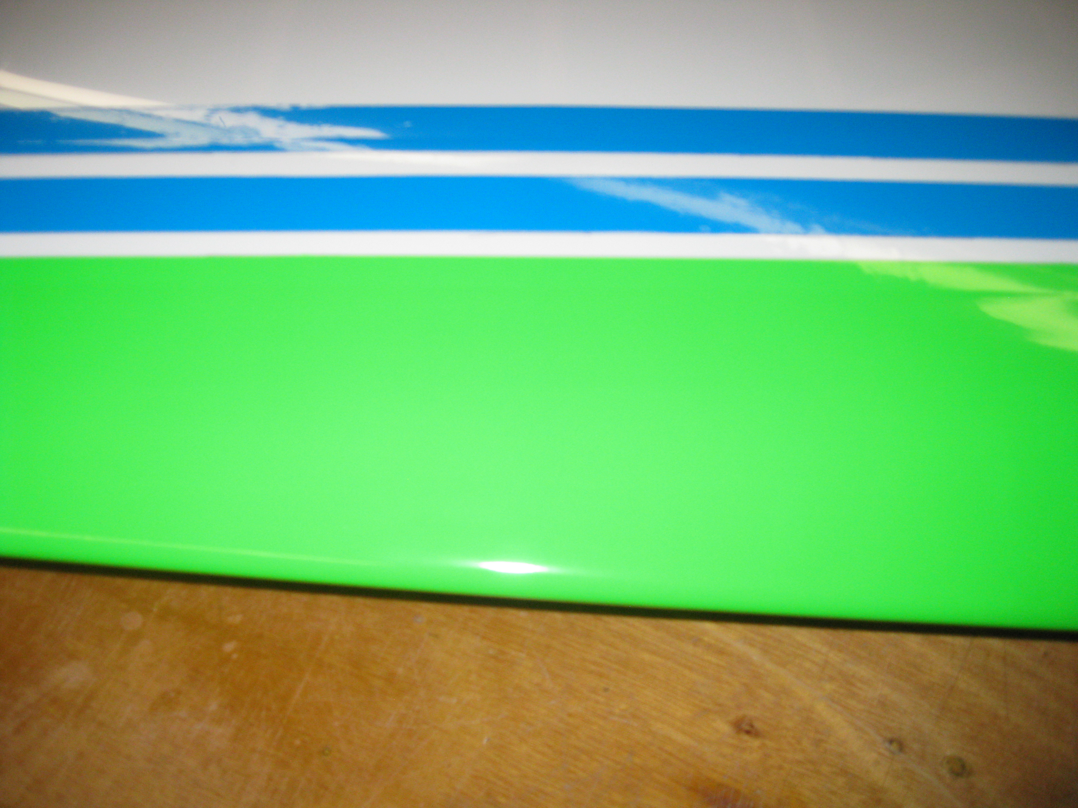 I take a wing or a stab to the paint store that they put the camera on. Only color they could not match was the fluorescent green from Hobby King. Can't tell you how different brands I tired. Here is the color scheme I was looking for and a photo of the model wing. Now fast forward 6 years and it still sits!