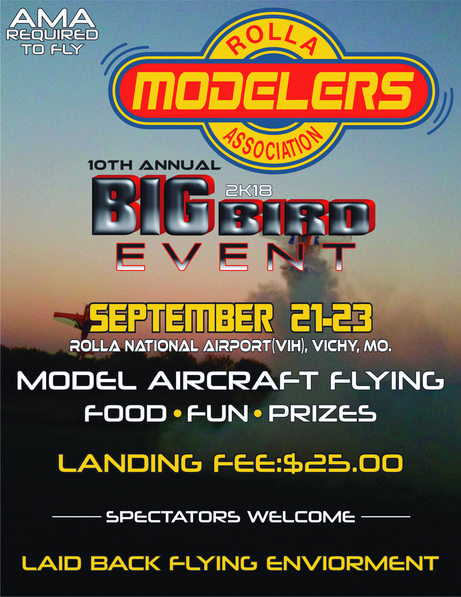 10th Annual Rolla Modelers BIG Bird Event 2018. Sept 21st-23rd.