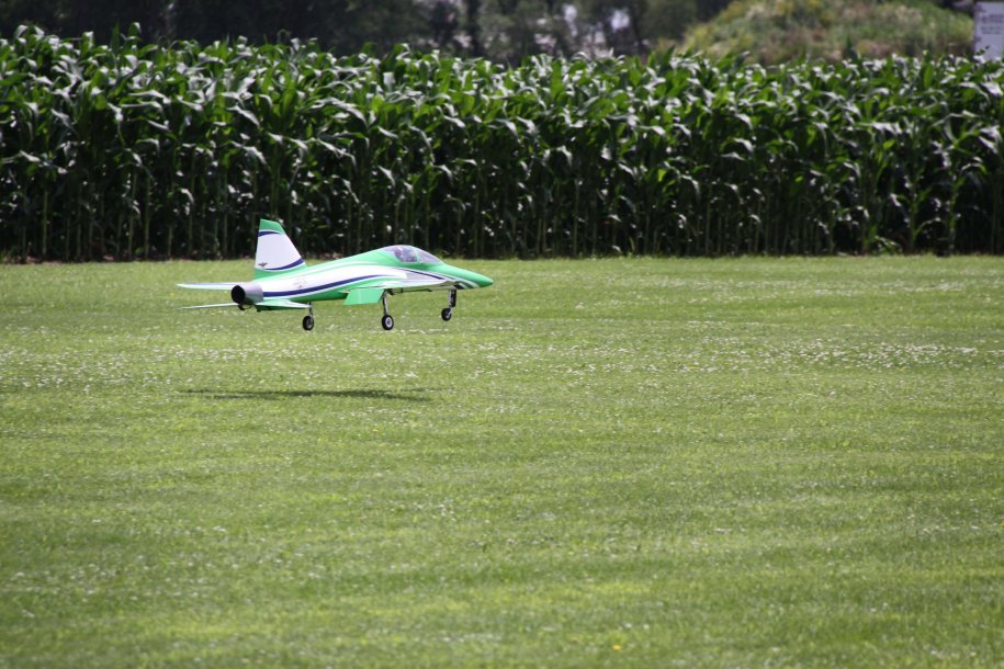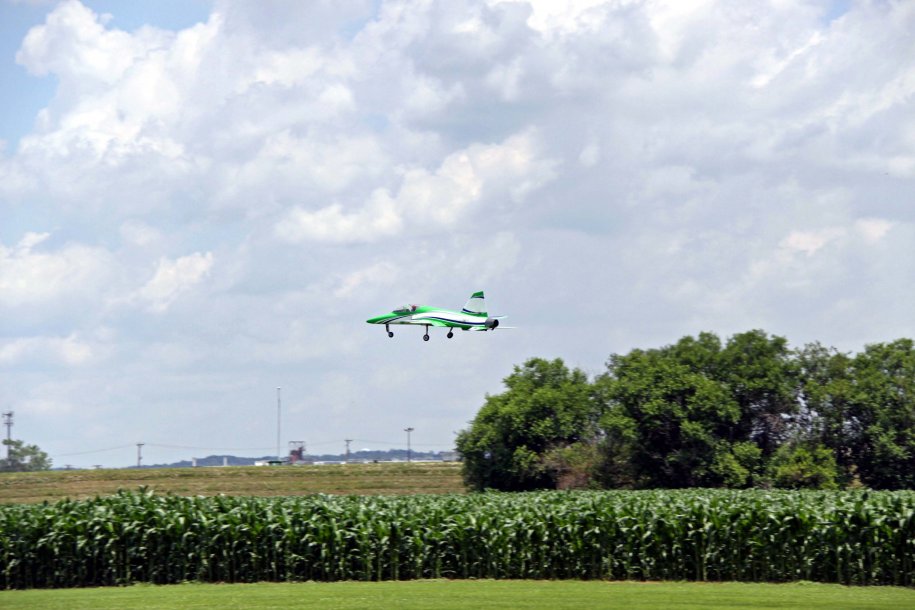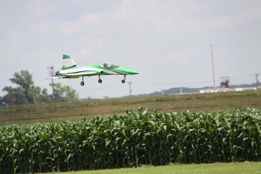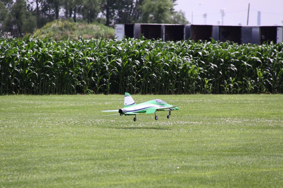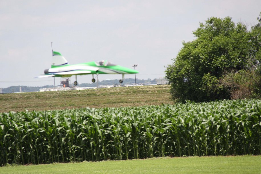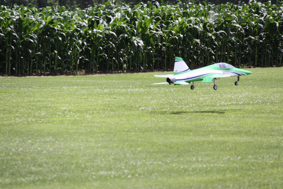 That jet off Joe's hauls the mail!! He did an amazing job on that flight. On what became the last pass we heard a couple of pops from the turbine, both said that's not good at about the same time. Sure enough, flamed out about halfway back on the down wind leg of approach, flying dirty. Pulled up the flaps and babied it in, just BARELY cleared the corn and settled right in. Some serious skills right there! Figured the ecu was still learning from the altitude change and caused the flameout.