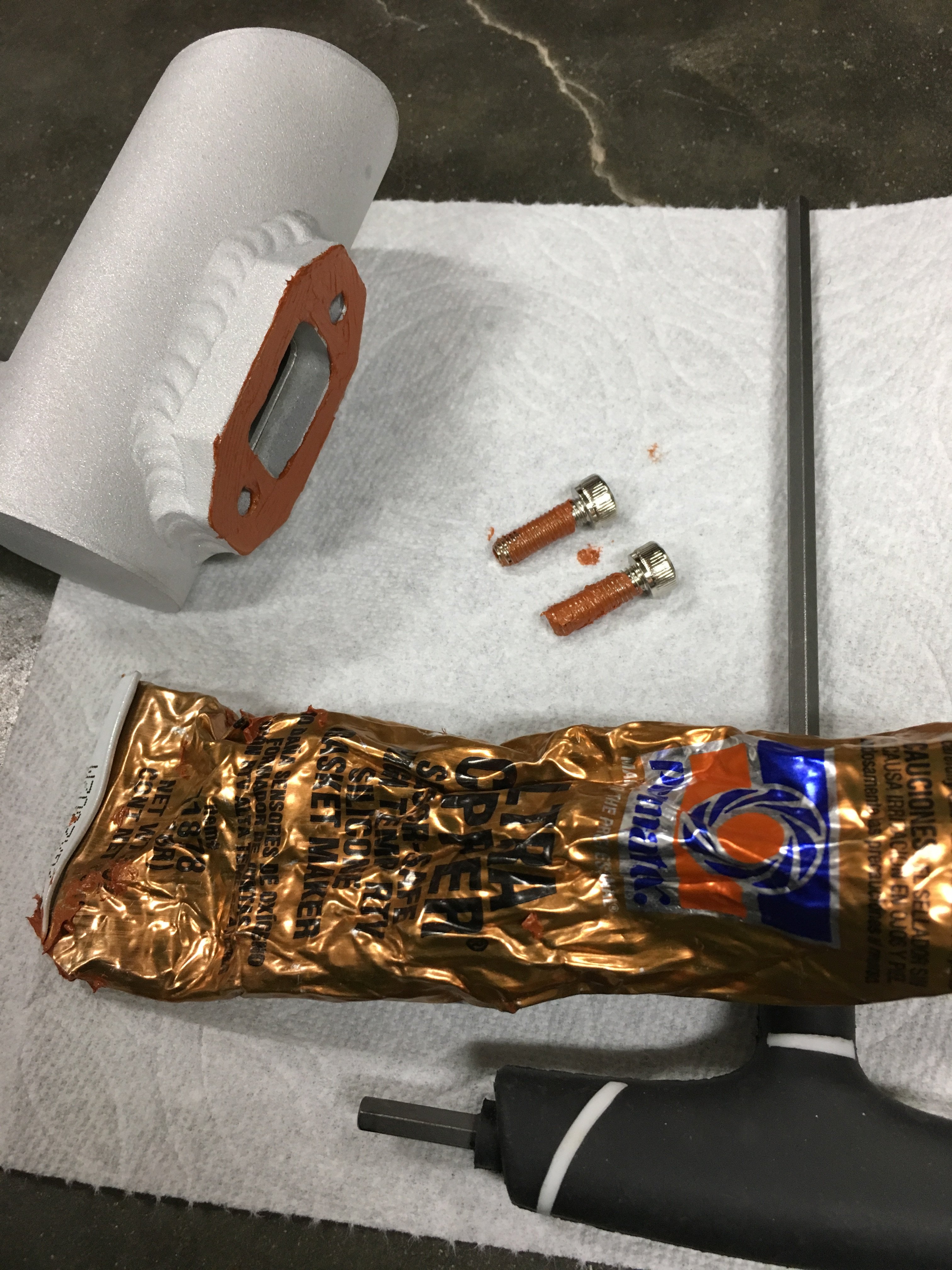 Slapped the mufflers on. Copper RTV on the bolt threads and a thin coat on the muffler mating surfaces.