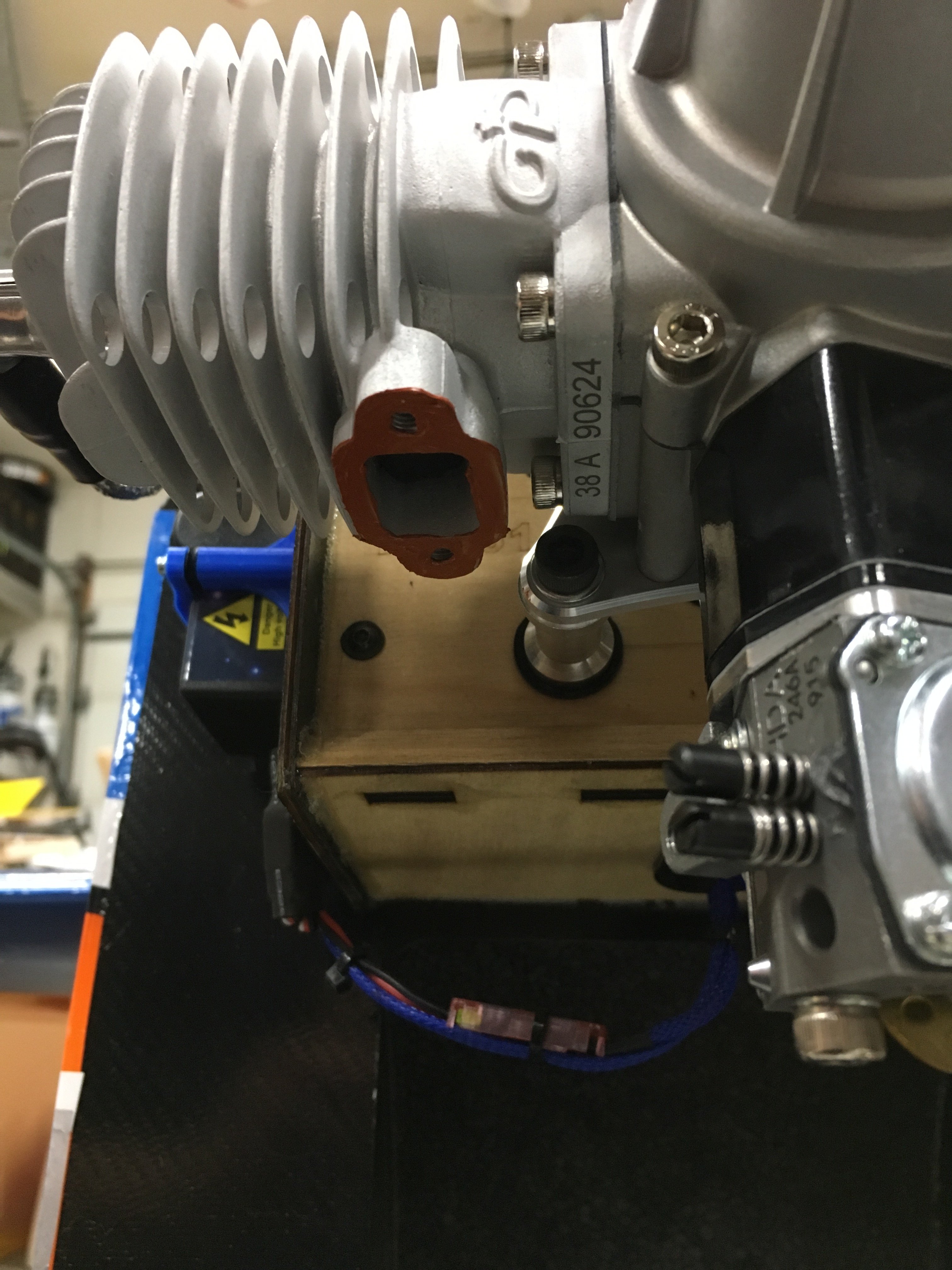 Worked on my choke setup. Basically found a threaded pushrod I had laying around, put a 2-56 ball link on it. Drilled a hole where I could dangle a piece of wire with a z bend in it attached to the choke lever. Put the cowl on, and checked where it hit and marked and dremeled out a hole large enough for a small grommet. Put on my linkage setup, let it protrude out the exit, made some strategic bends, trimmed it and created a flat spot and installed a wheel collar.