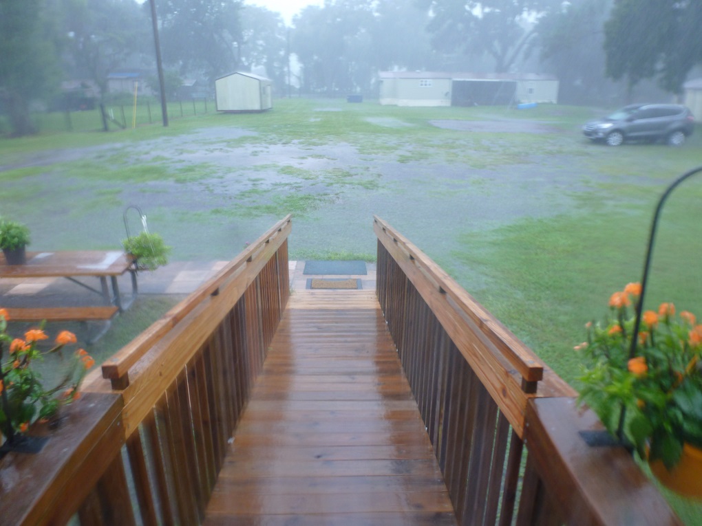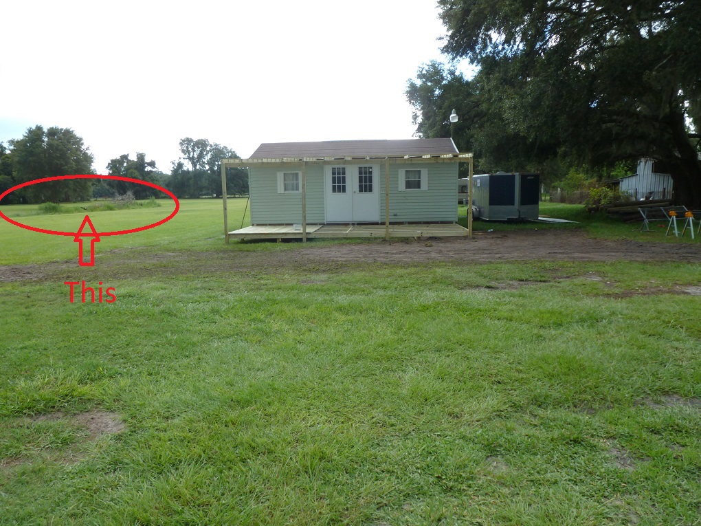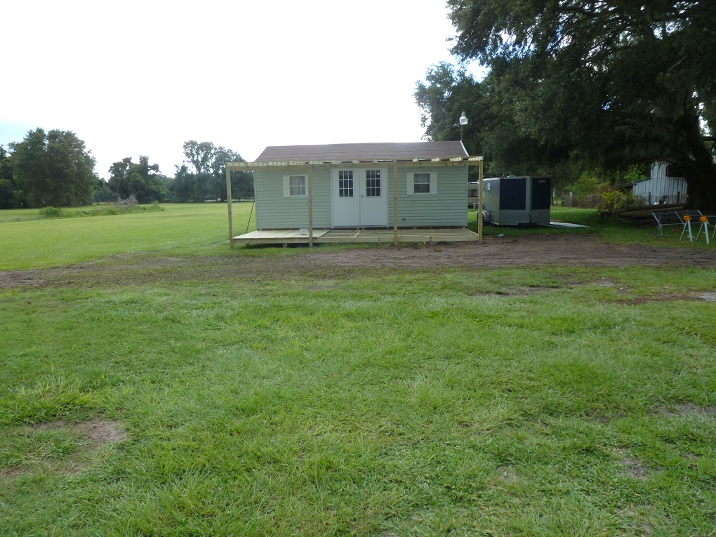 The green one is the previous shed/shop, the grey is new. The white ramp door I built to replace the cheap and un sealable roll up door and it is hooked up to a winch cause it is heavy. The siding from the back of the green shed will be used to replace both ends of the grey one. The roof between them will simply be a 25' sheet of rubber roofing material creating a 24' long valley. Maybe in a year or so I will recover it as a single peak, but not now I'm tired. There is another ten foot section of lean-to that still need's to be added to the left and on the right a new patio will be added in stead of just a lean-to. Also, the mobile home to the distant right will be removed from the property after the mother-in law is gone leaving that front acre+ an open view, maybe put up a nice wood fence across the front at the road. The silverish structure to the left in the tree's is a barn of the only close neighbor I have, whom stays to himself.