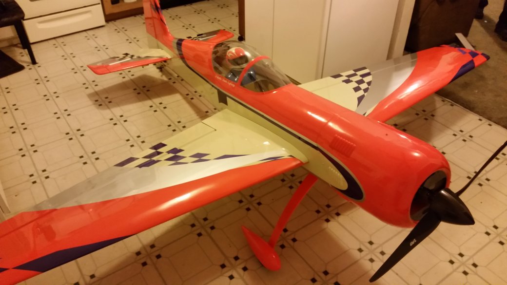 View attachment 8499 So I did the final touches on the Sukhoi tonight. Double checking assembly, attachments, Motor mounting bolts, prop bolts, exhaust, wiring, fit of cowl, wings and stabs. Installed onboard tach for inflight reference. And final step, balancing. I balanced it according to the manual for the initial flights. After that, I may change it, but may keep it as it is. Empty tank, perfect balance with just a tad of drop on the tail. My thoughts are with a full to half tank of fuel, she is going to be right on the money. Maybe, just maybe just a twitch nose light. (which I prefer) 42 pounds on the money with no added ballast weight to balance. Man, I like how this turned out. Next is the maiden flight when the weather finally warms up where I won't be frozen to the bones.