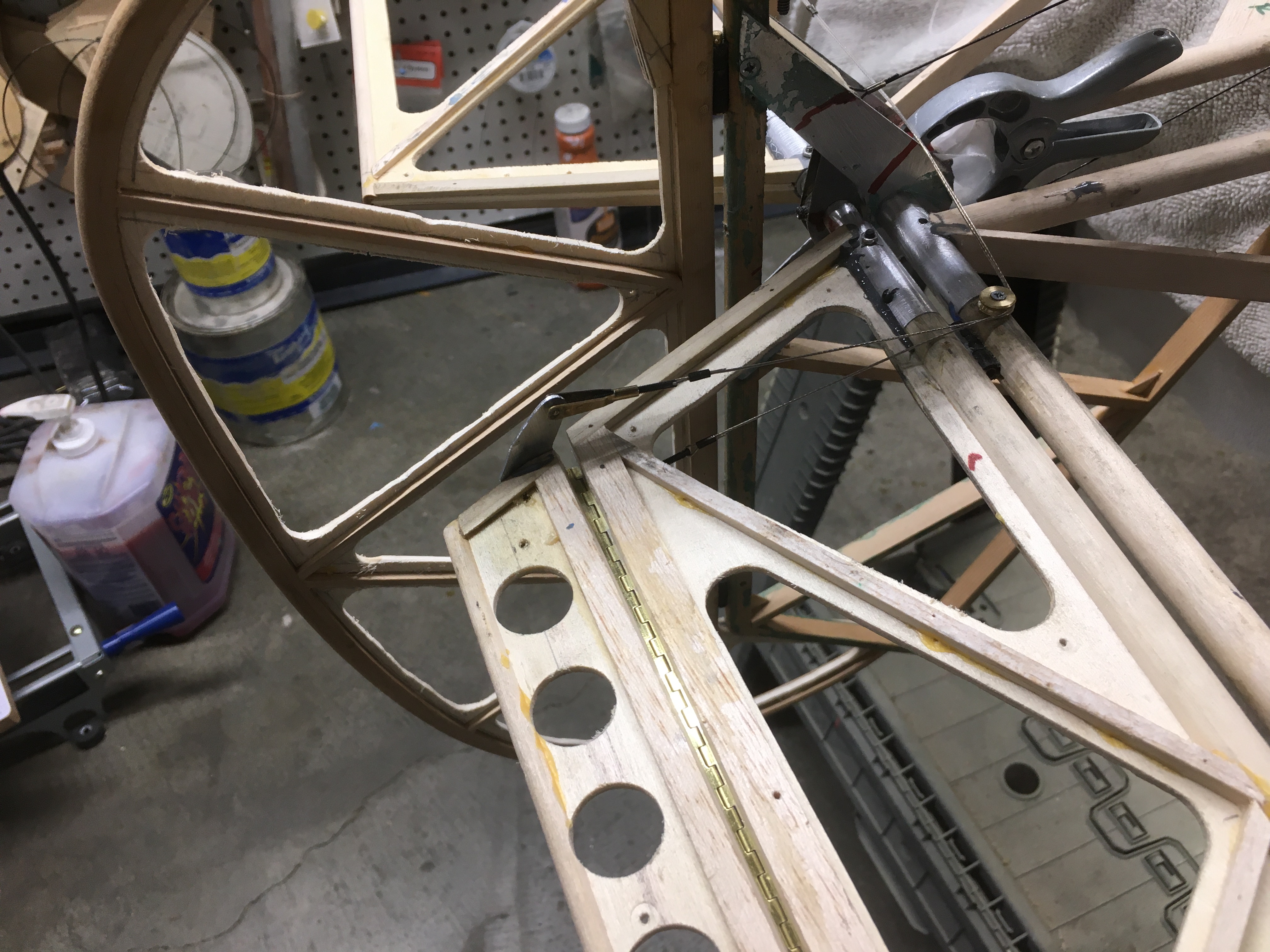Working on the trim tab pull-pull set up. Using the three view and photos collected tried to duplicate the full scale, was pretty sure it would work as hoped and darn if I wasn't right. The top pull passes through the elevator to a pulley on the bottom of the trailing edge of the stab. The bottom pull simply connects to the pulley. As the elevator goes through the travel range, both cables get tighter with up elevator and looser with own elevator. I really wanted this work but not the case. I wonder how cable tension is maintained on the full? scale?