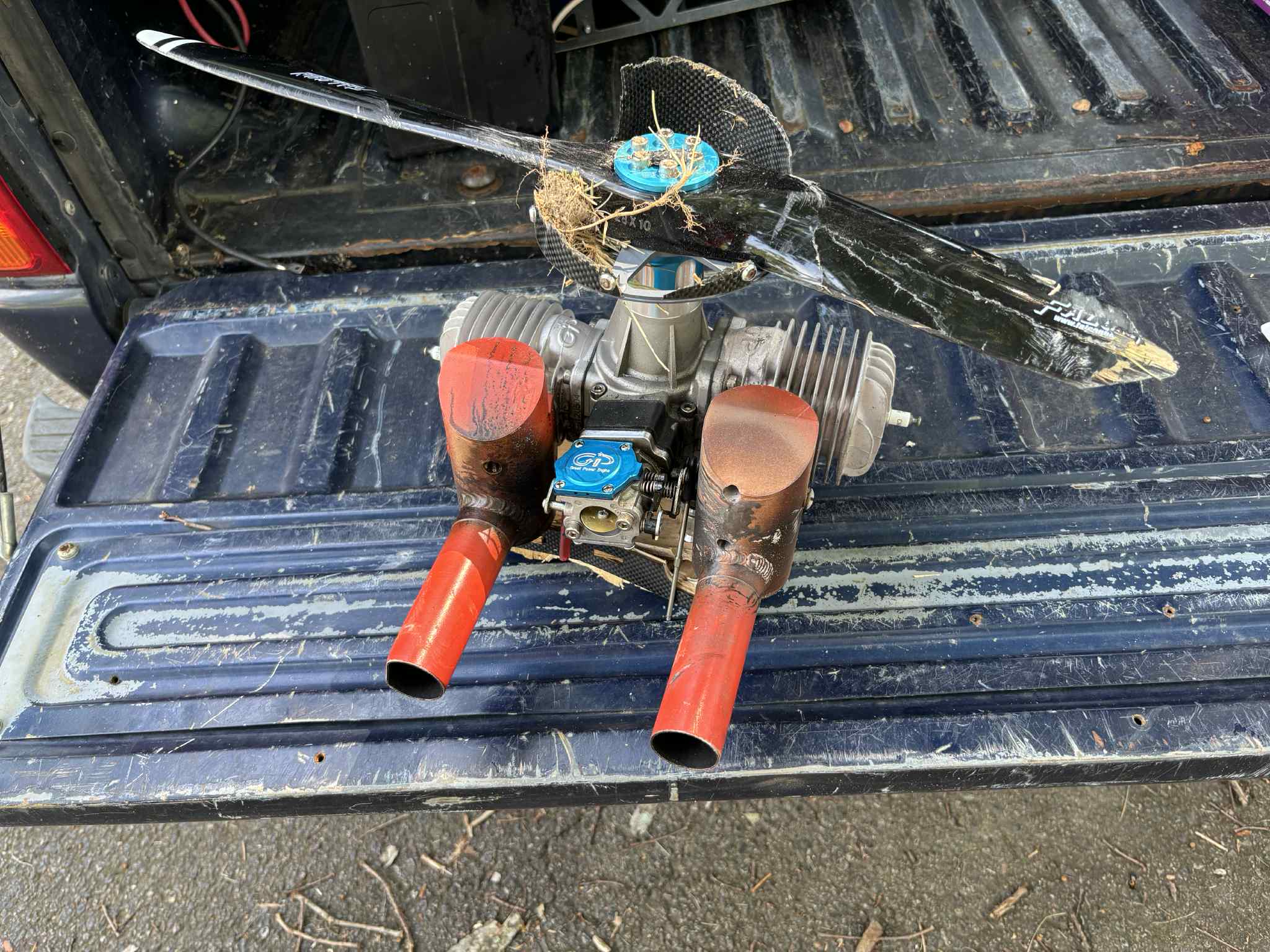 Getting closer to getting my first 120cc airframe in the air. A buddy had an unfortunate incident with his 104" EF Extra 260. Decided he is going with all new equipment on his next airframe so gave me the GP123. It needs an ignition module as the wire where pulled out of the box and one muffler needs a slight repair. Otherwise though motor still has good compression and turns over smoothly. I put a dial indicator on it and the crank runs true so basically a 120cc engine for $130 as the cost of the ignition.