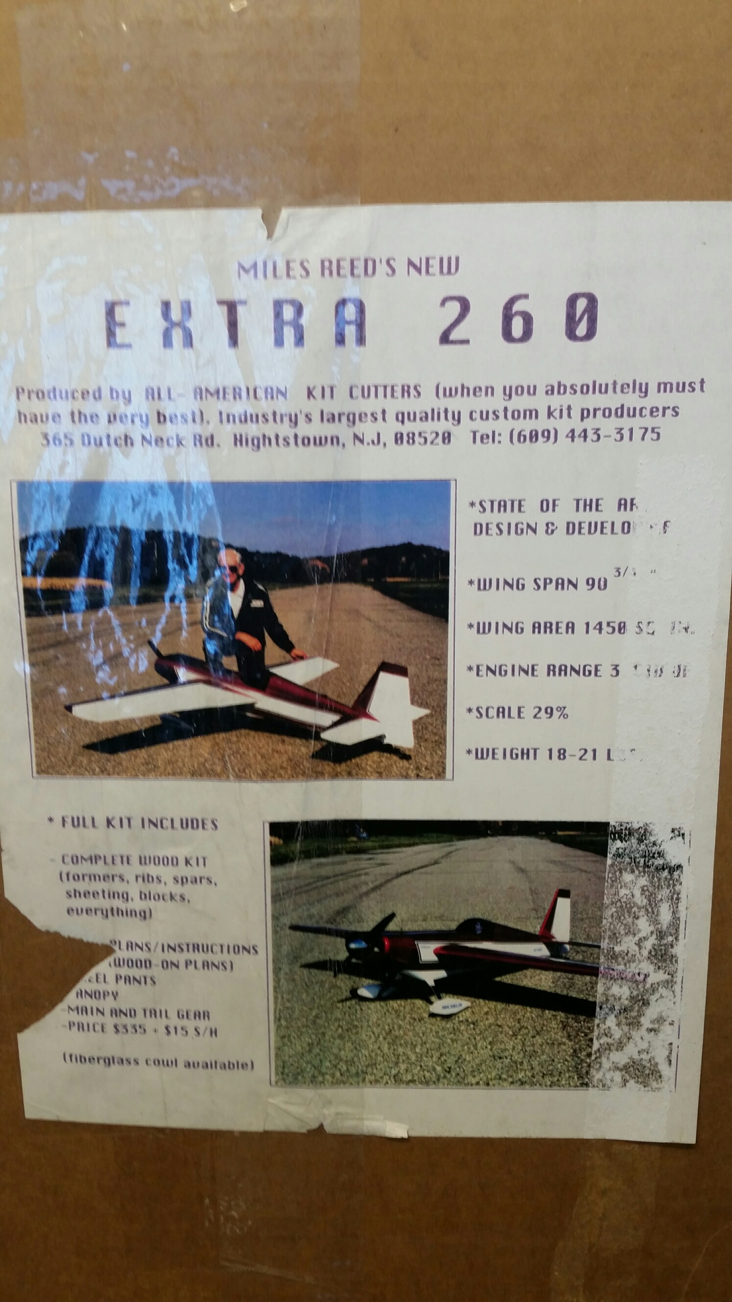 . This is going to be set aside for a future project. I am going to have the plans scanned and I am going to draw them up in AutoCAD. I want to do this for two reasons. First is, I want to change the wing design to a two piece wing with a wing tube and reduce some of the wood thicknesses to save weight'. Secondly, I want to scale it up to 35% so I can cut a kit since my chances of ever finding a 35% Carden Extra 260 kit are slim & none. . . . . .