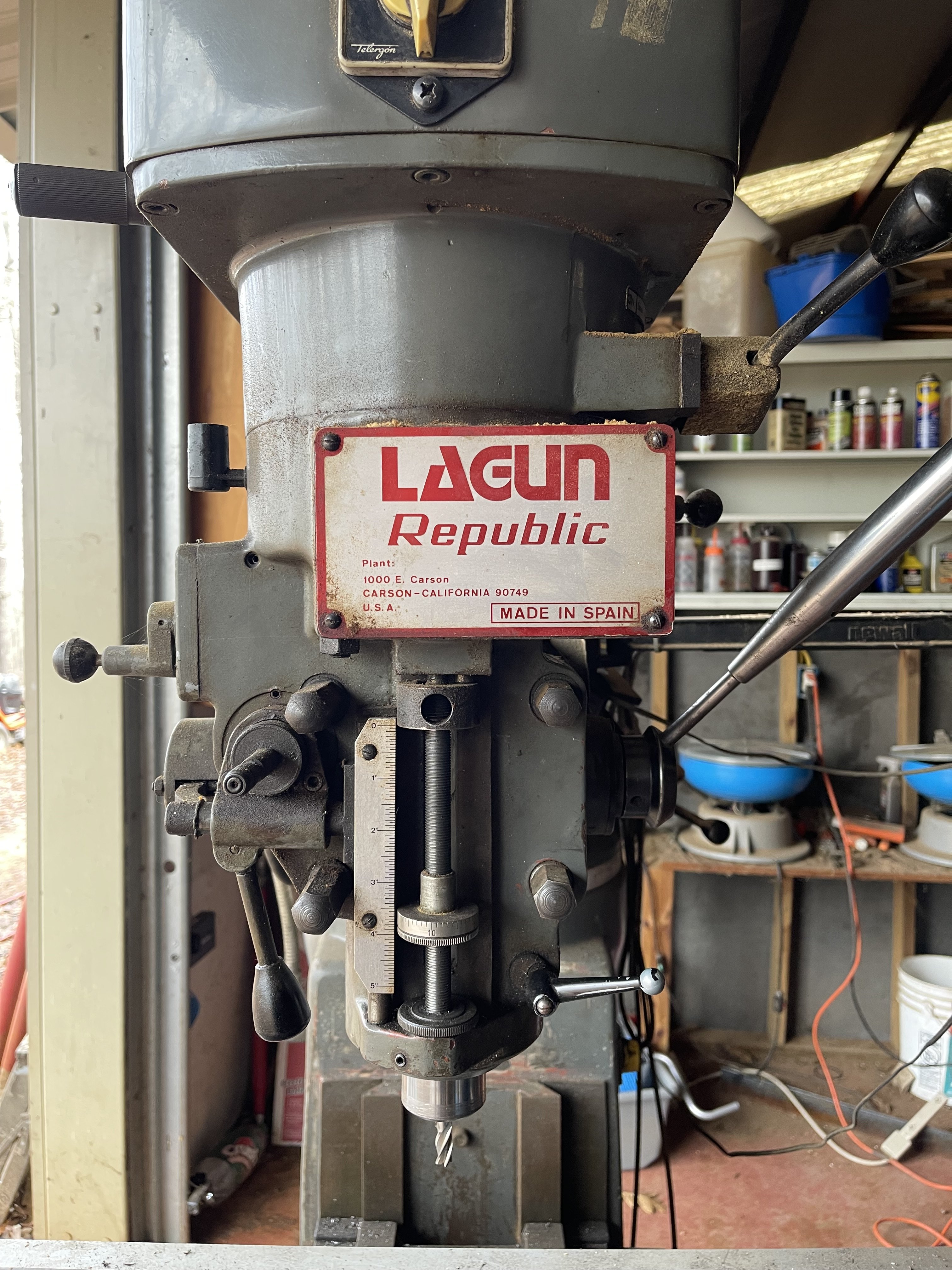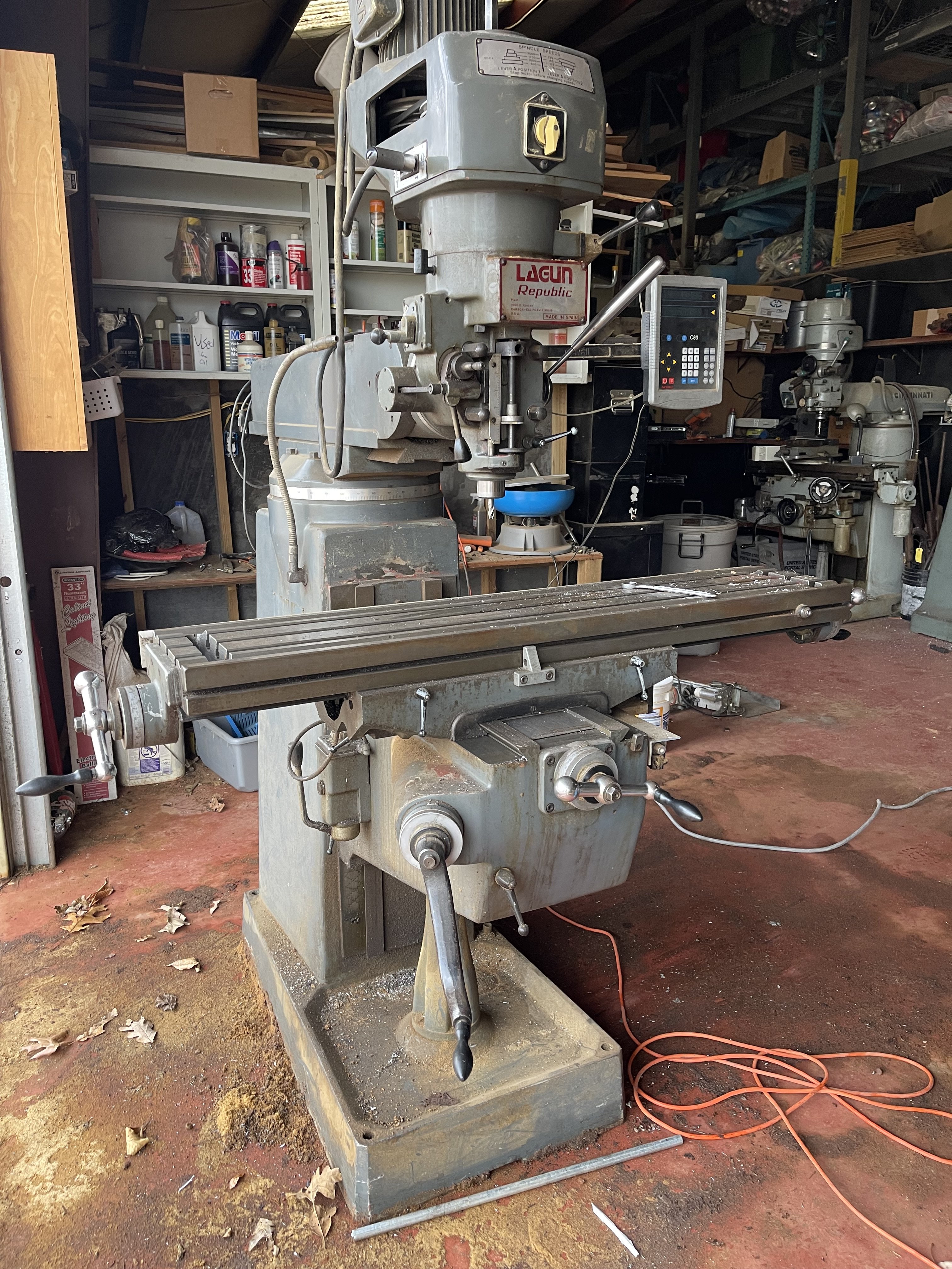 Finally. After more than a year of trying I picked up the big Lagun mill. Probably 3000 lbs. Unloaded it at my shop and called it a day (100 mile round trip). Moving it into the future machine room will require wall opening.