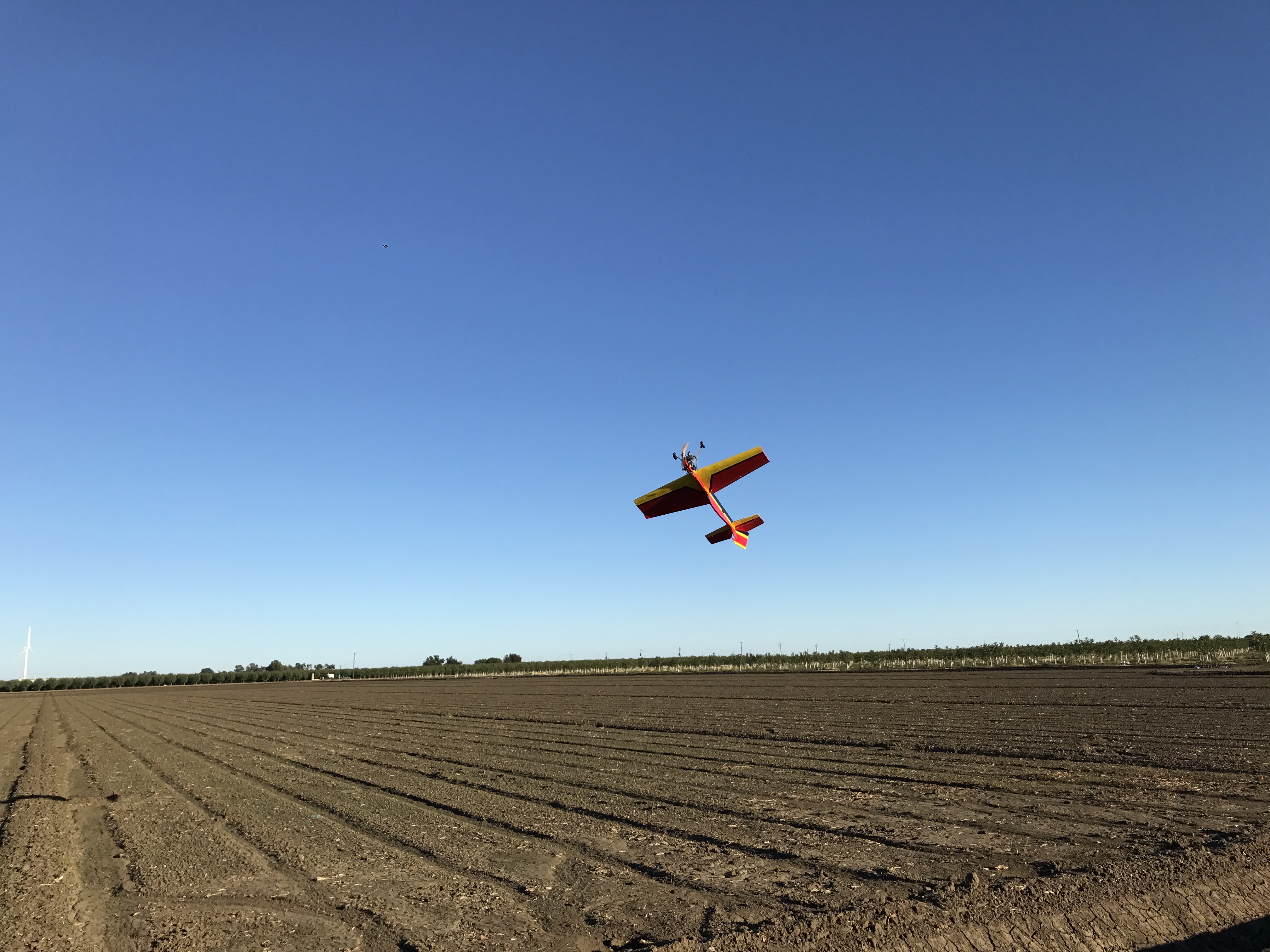 Lunchtime fun: The extra travel helped. Easier to get into a knife edge spin. Engine breaking in more is also helping considerably! Probably more than the extra travel. This thing is a ton of fun to fly! Everything happens so much slower than what I am used to that I have an opportunity to play with the sticks and see what happens. Really a blast to fly!!