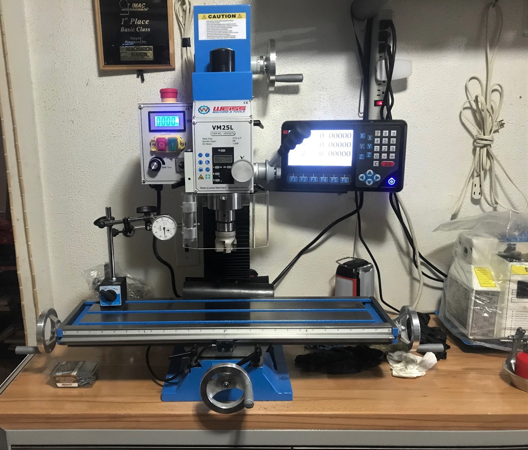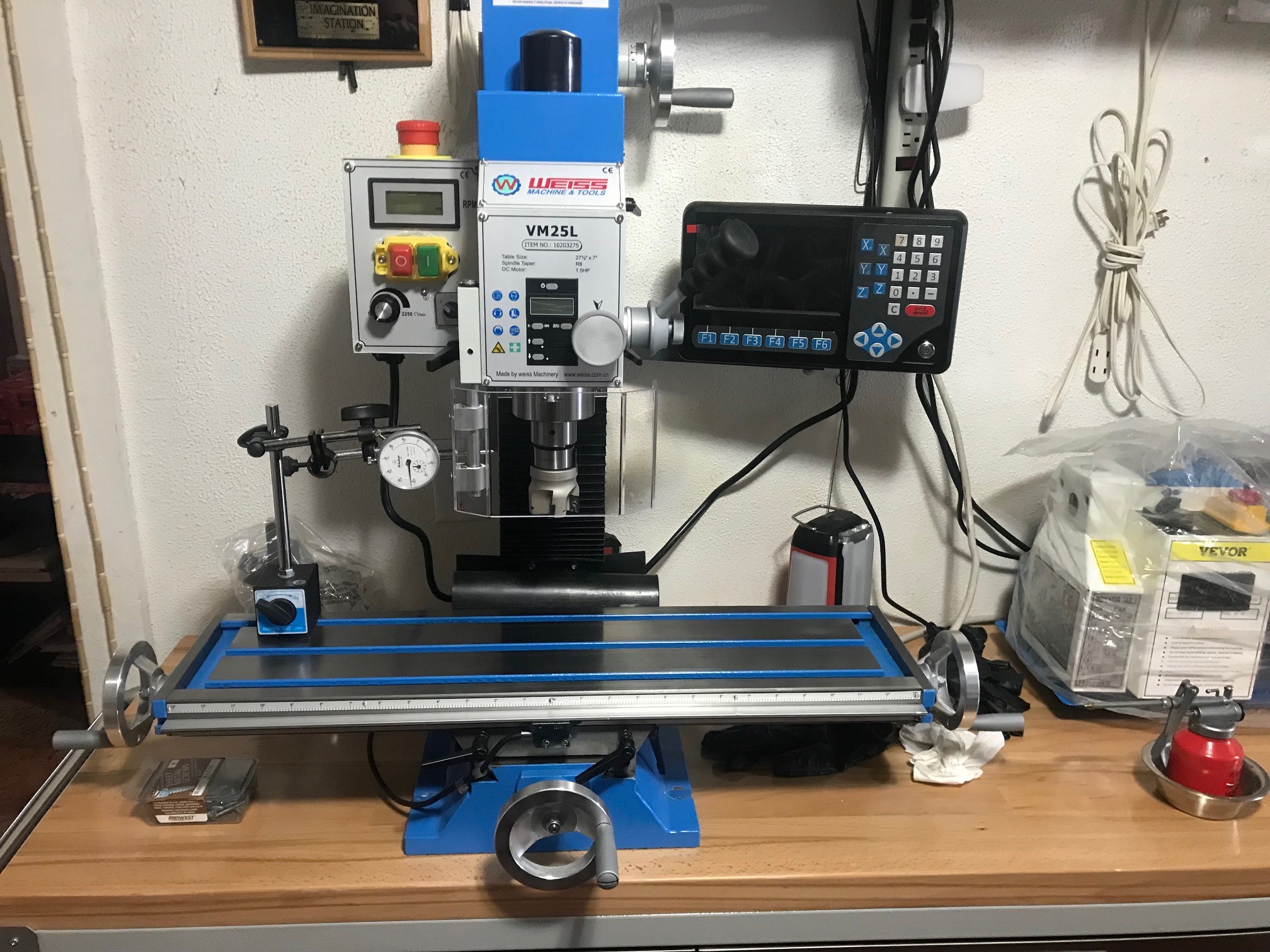 Got a wonderful surprise for my birthday yesterday. Wife got me a benchtop mill with DRO! Can't wait to start making some chips with it. She also got me a nice bench to put it on. :banana-dance:
