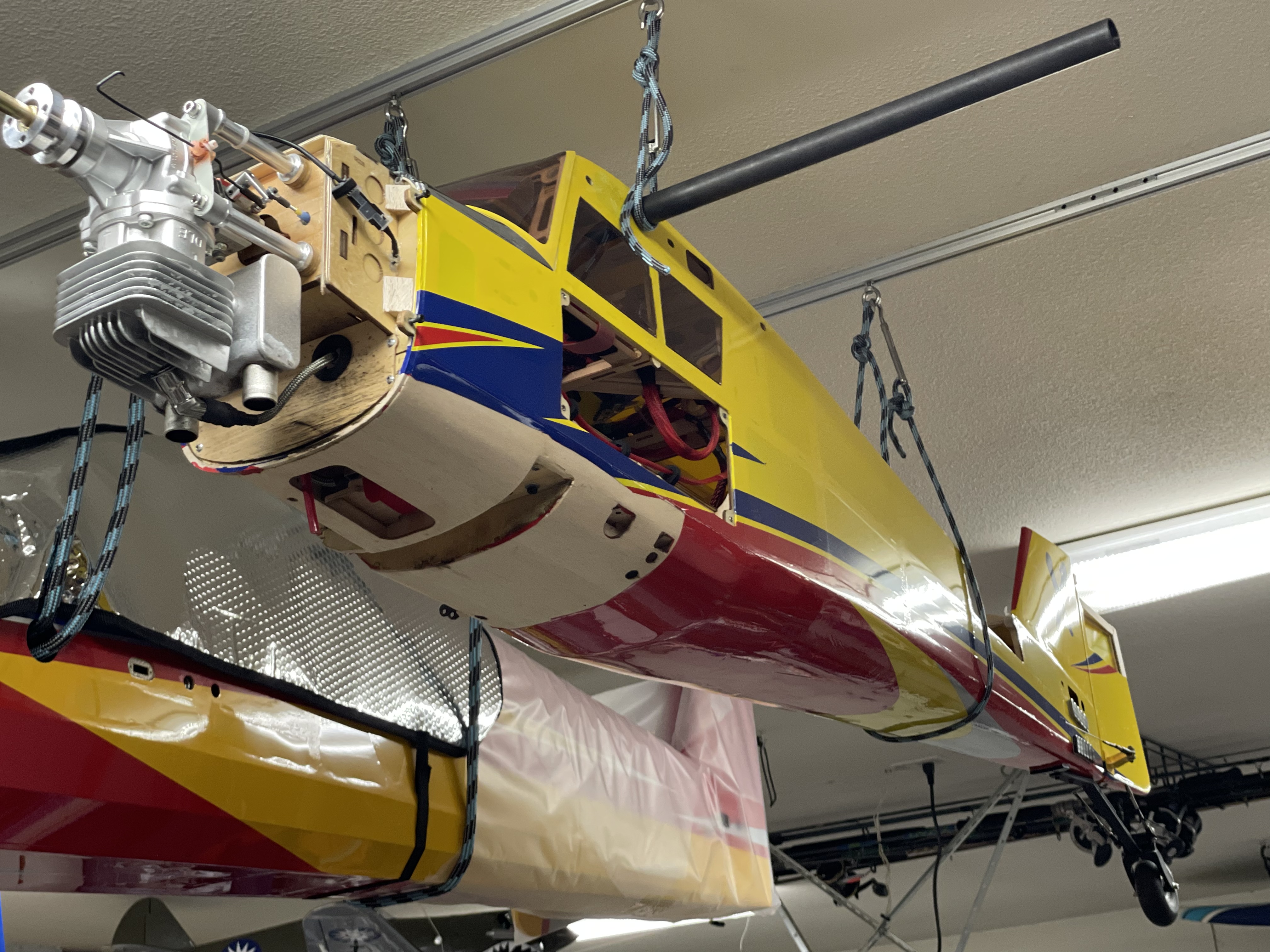 The undercarriage needs the most work along with the fuselage. The servo motor burned out - rightfully so! Holding a 20# plane for that long. Hung up the fuselage for now.