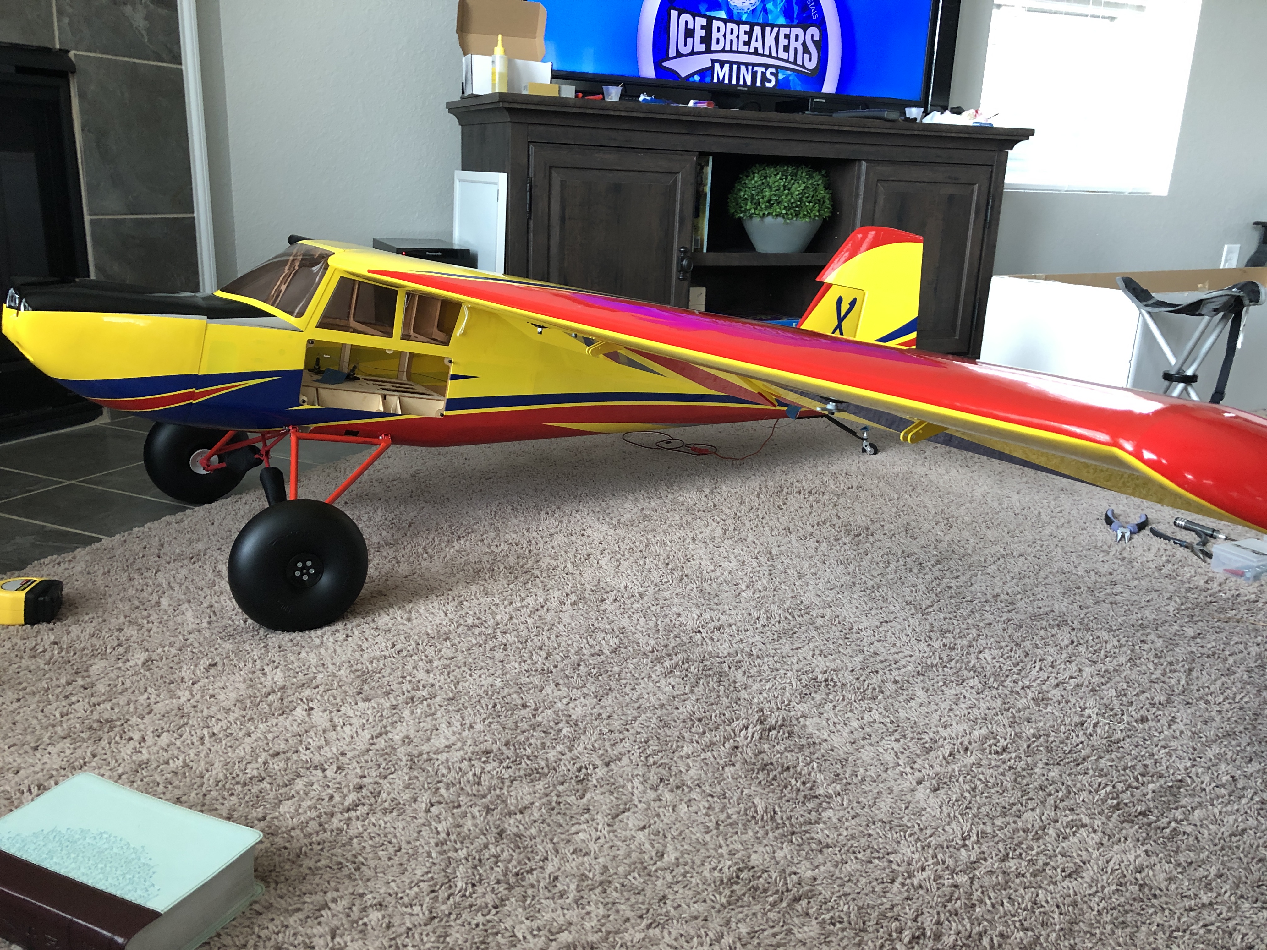 Mine is coming along. all surfaces complete, all servos installed, landing gear (FINALLY finished), switches and wiring installed, went around the nose and cockpit all over the frame and applied epoxy to critical structural places that looked like they lacked enough epoxy.
