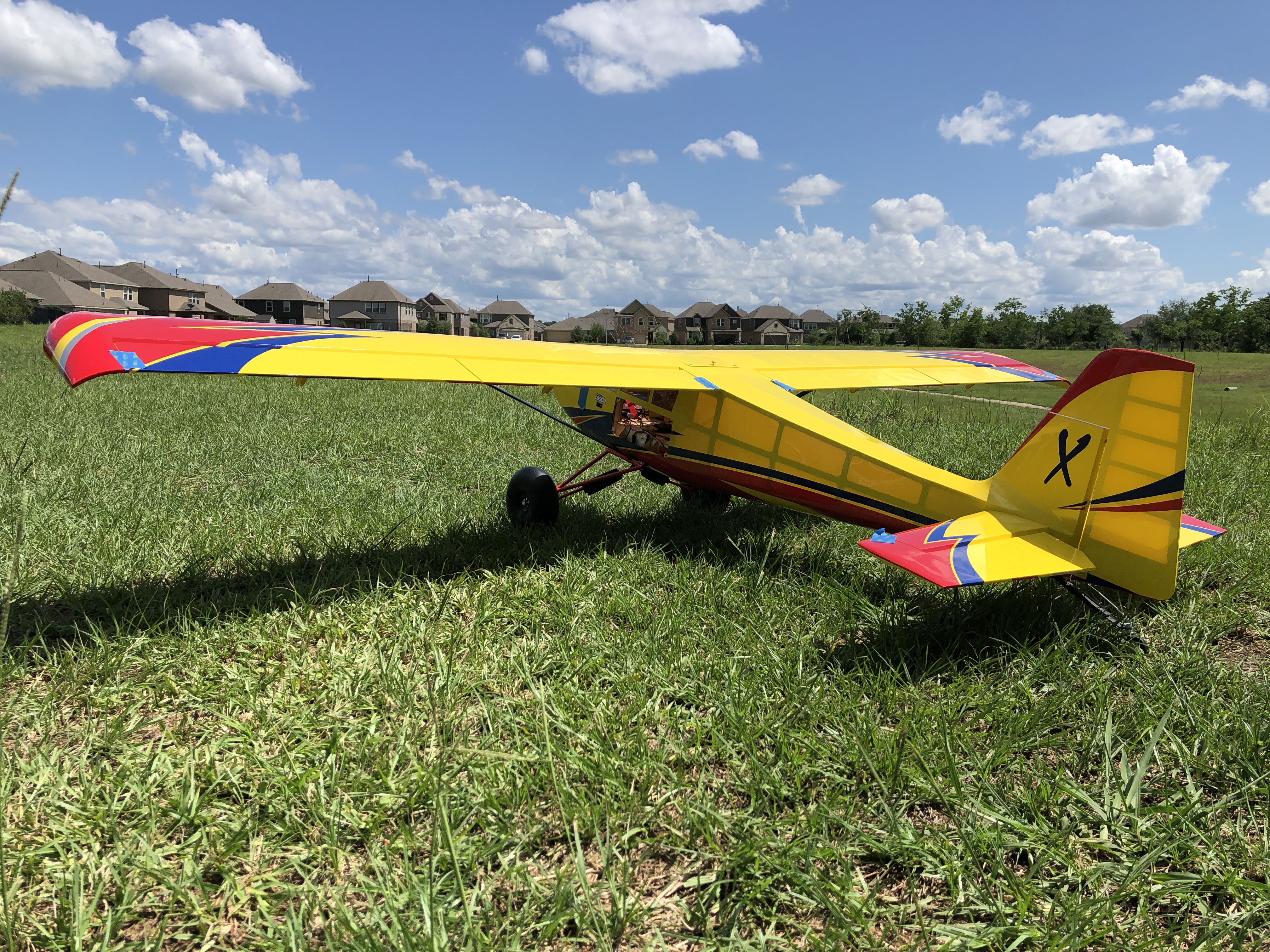 Ok, before coming in to the hospital I couldn’t help resist getting some shots of the bird out in My backyard flying field. I still have motor/ESC installation to do and some other things, but I had to see how she was looking. So far I like the looks of her!