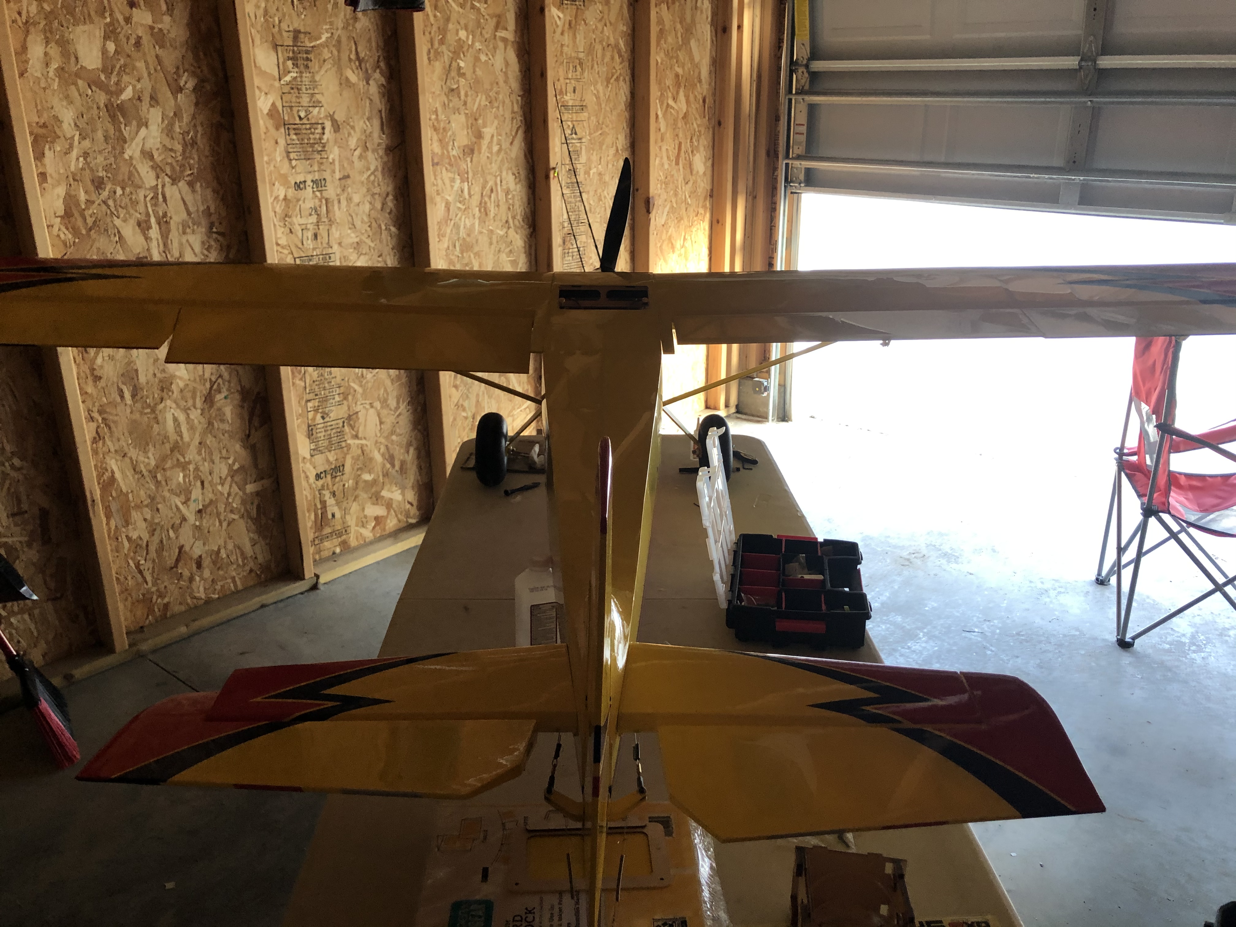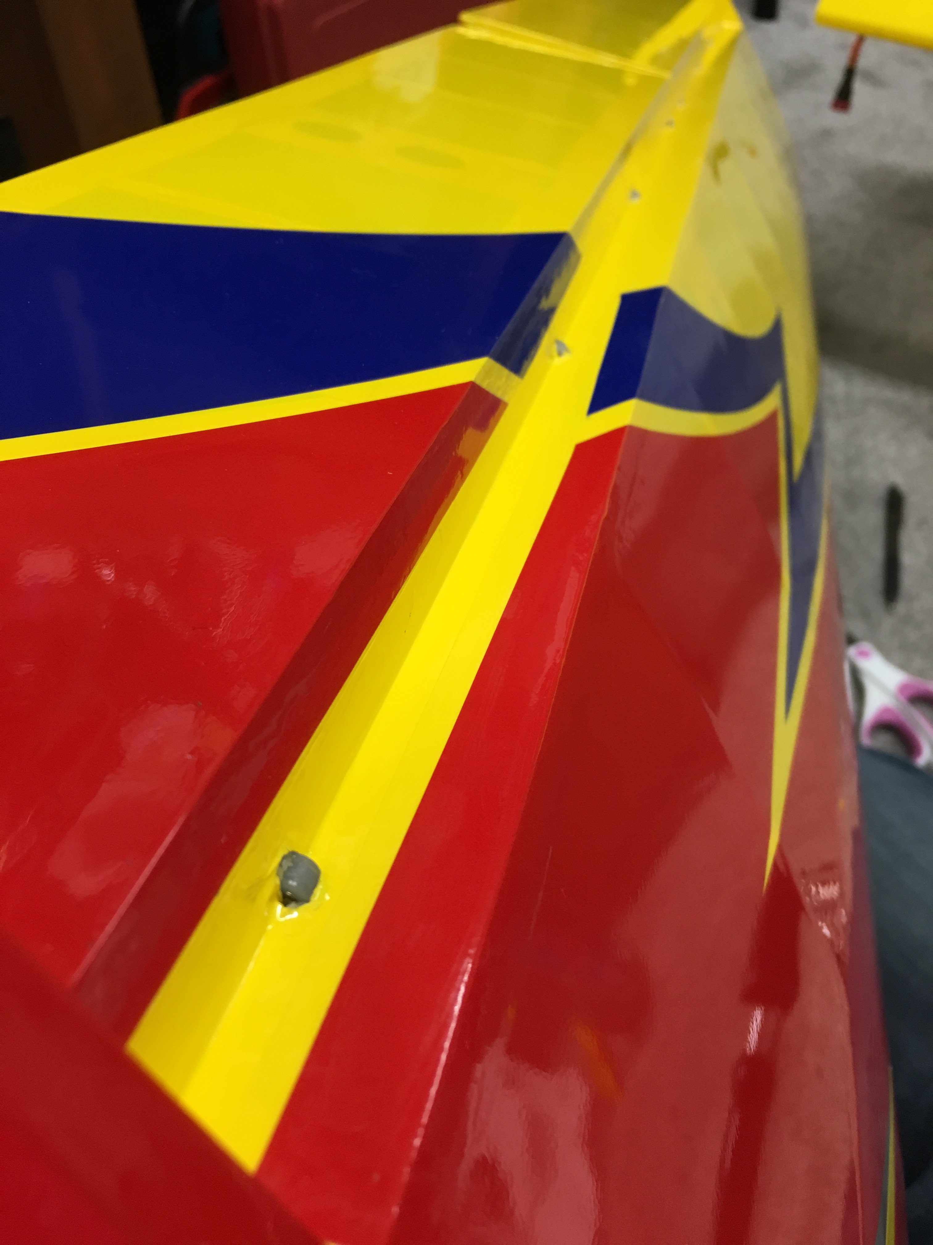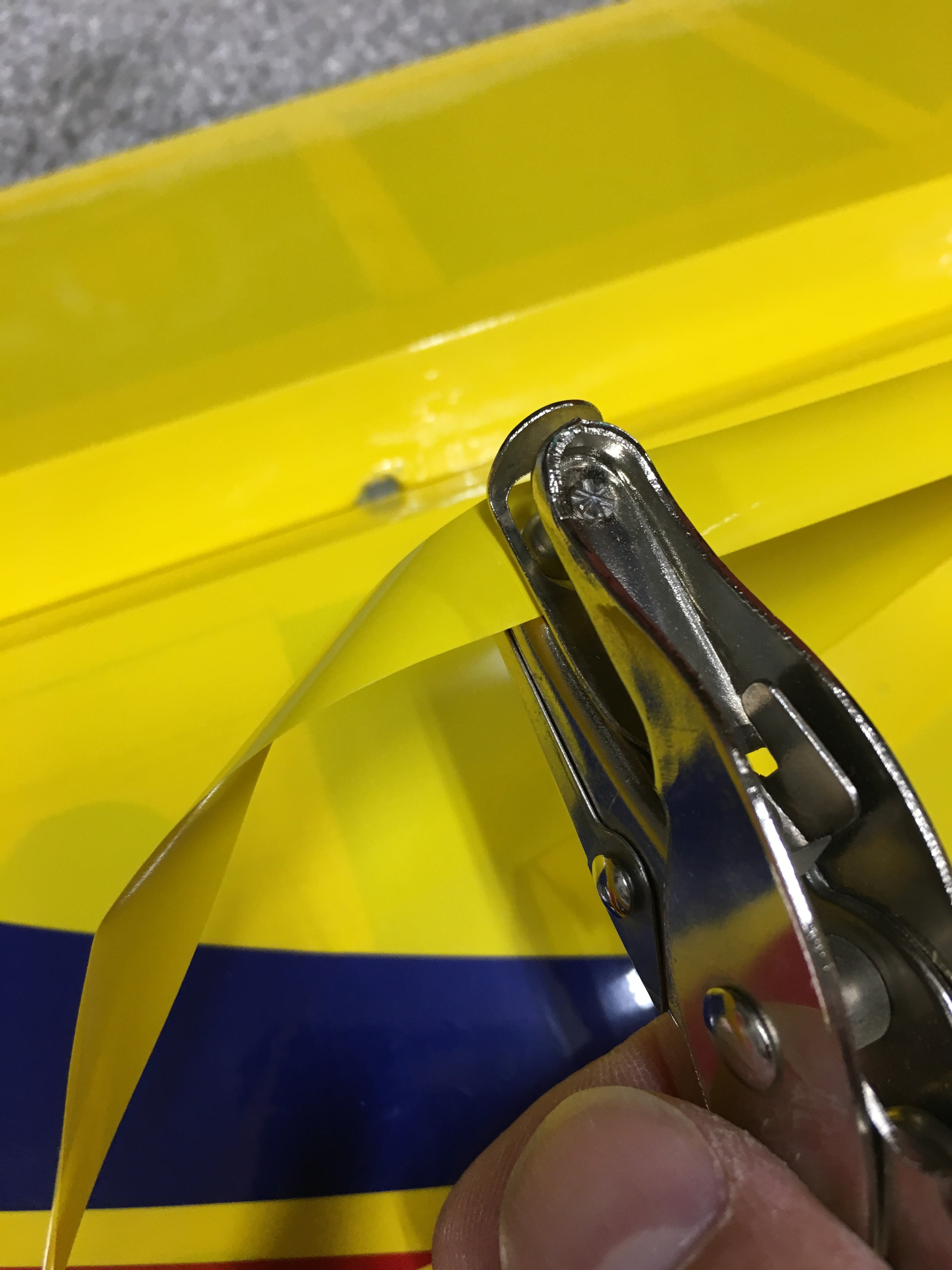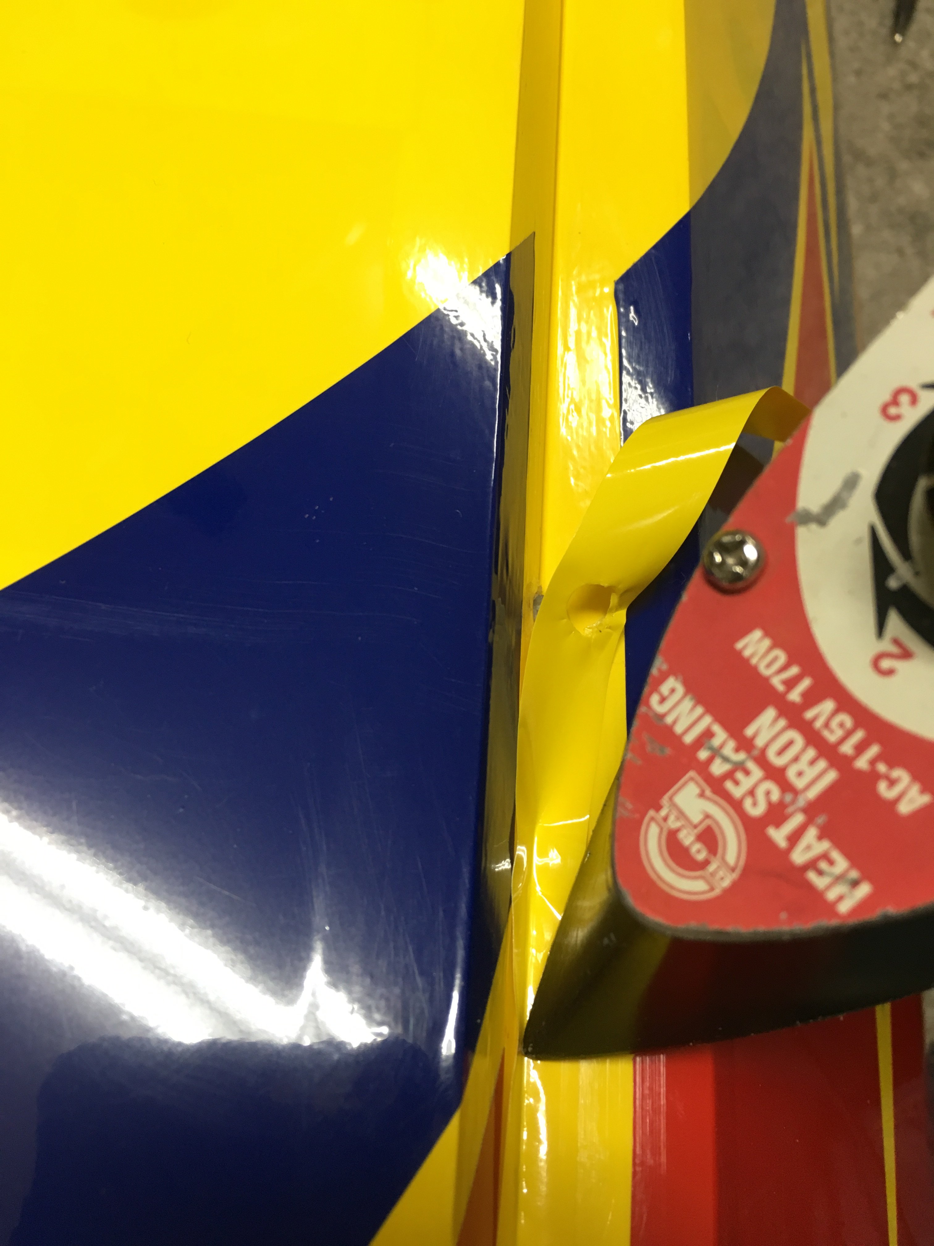 Went ahead and cut some 1/2” bright yellow strips to gap seal the wings.... I took a break and then did the other wing... except I was so tired I put a second gap seal on one surface! Duh!!! Tried using a hole punch to give the hinge some relief. It worked great