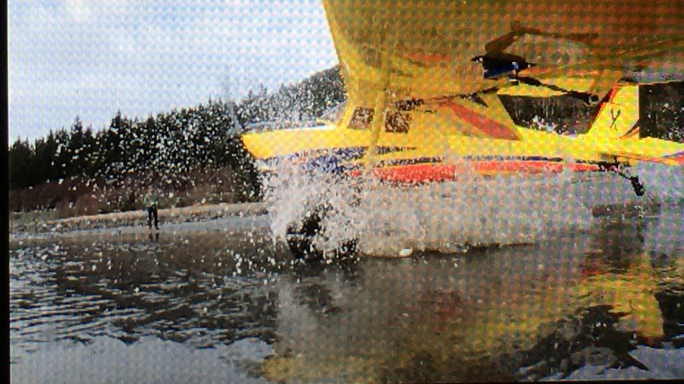 If I recall correctly, had to crab the plane on short final with losses and gains which led to full up elevator, left wing down, and ended up clipping the water/sand with the counterbalance.