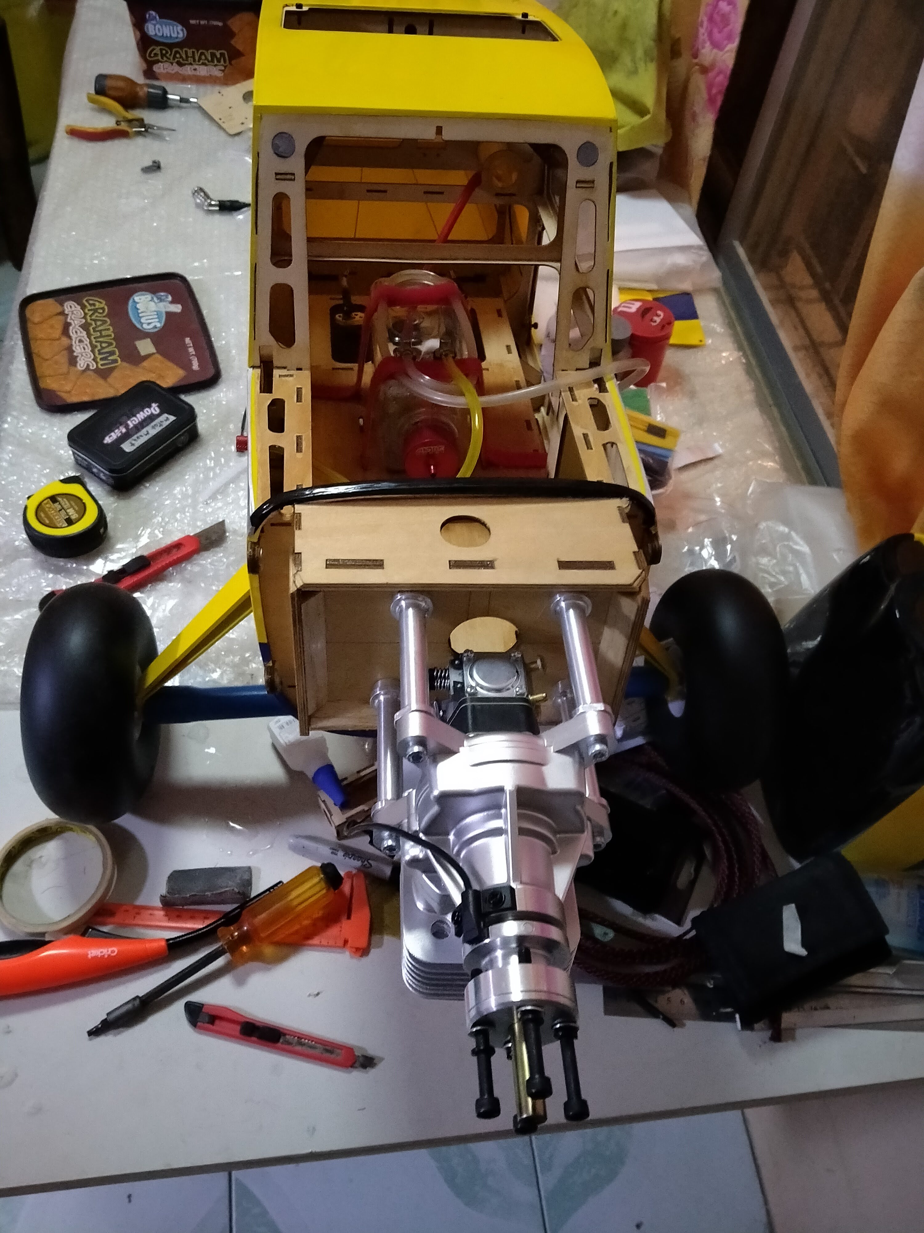 CG consideration. Getting to the point where I can begin to check the CG location. The instructions are wrong, and most always err to nose heavy for safety reasons. Read about Nick's re calculation through trial and error to a reasonable CG.