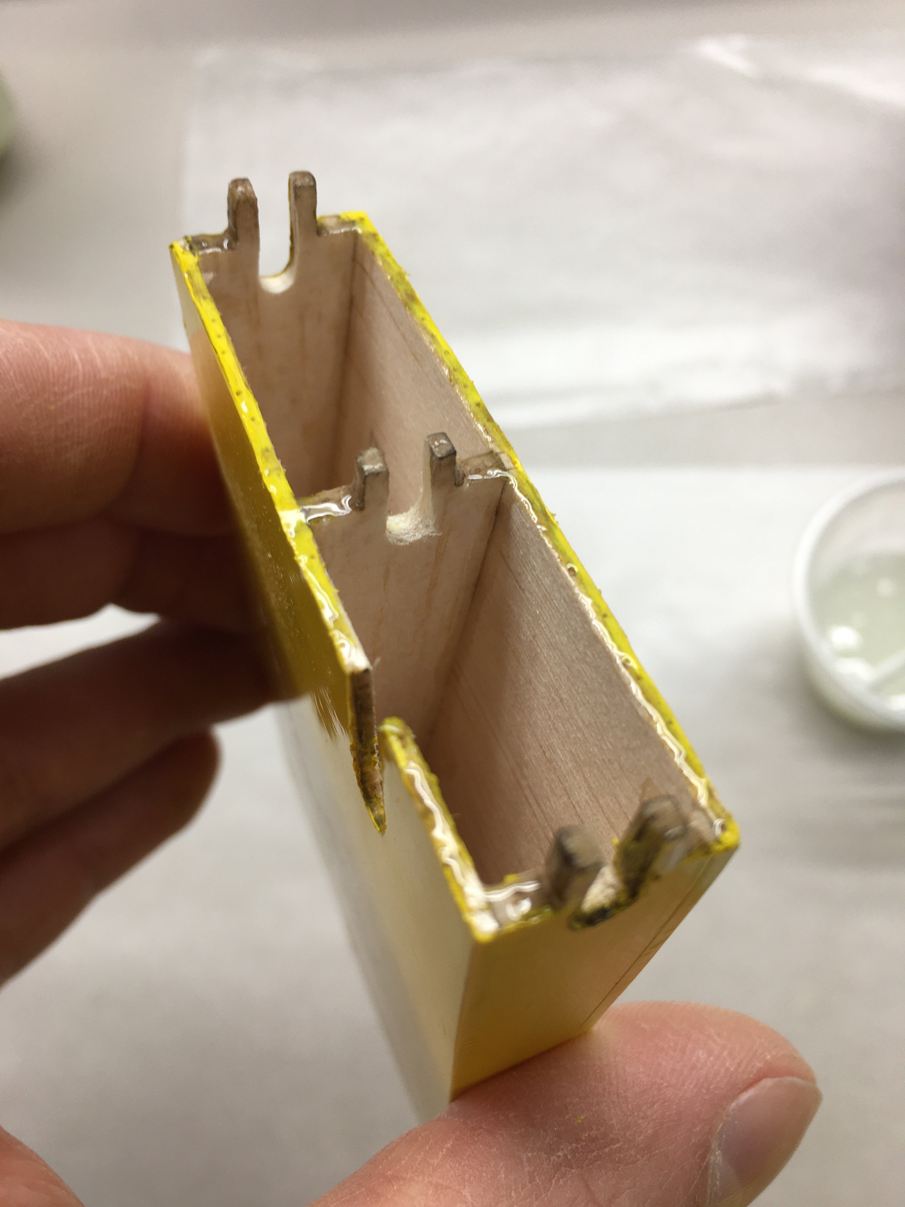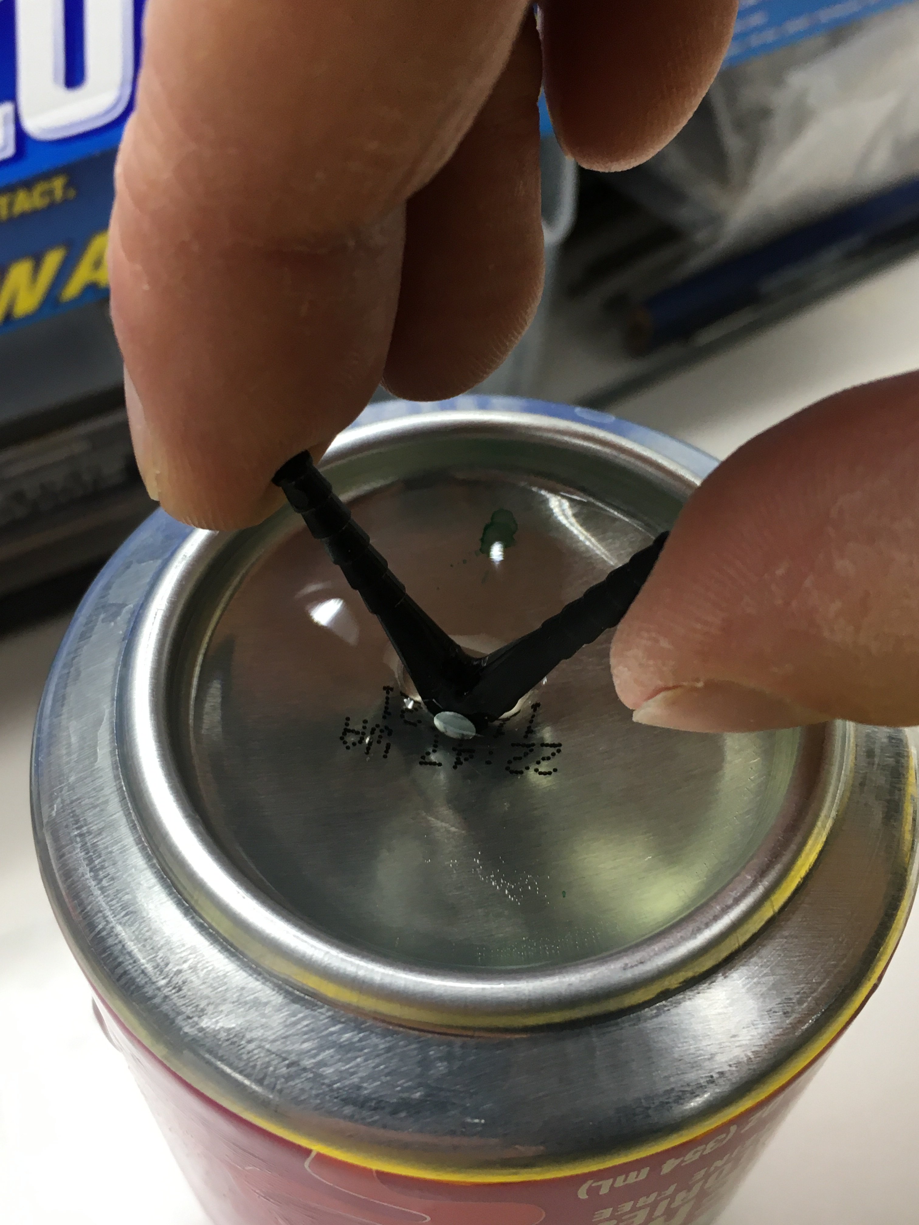 Deplete a carbonated beverage of choice. Flip it upside down and smear some petroleum jelly (Vaseline) in your newly created reservoir. Bust out your heat gun of choice and liquify that jelly. Grab a pinned hinge and bend it to its extreme so you can emerge the pin in the liquid jelly. Bend it the other direction and dip it again. Set aside. The petroleum jelly will solidify as it reaches room temperature again. Presto, now you have a fully lubricated and sealed pin to prevent epoxy from going where you don’t want it ho during the next step.