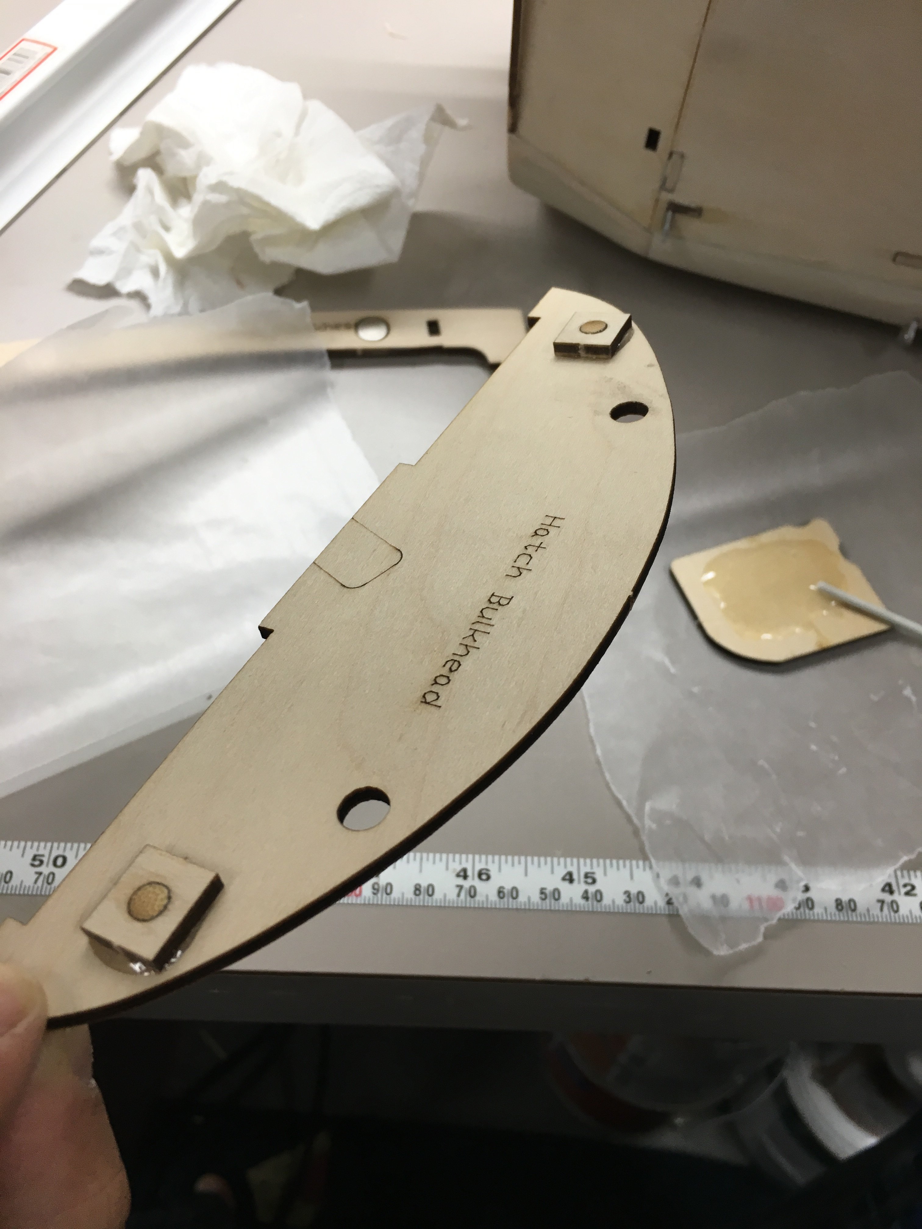 I wetted the sides to allow for a slight radius contour of the bulkhead. Otherwise you’ll surely break the light ply bulkhead.