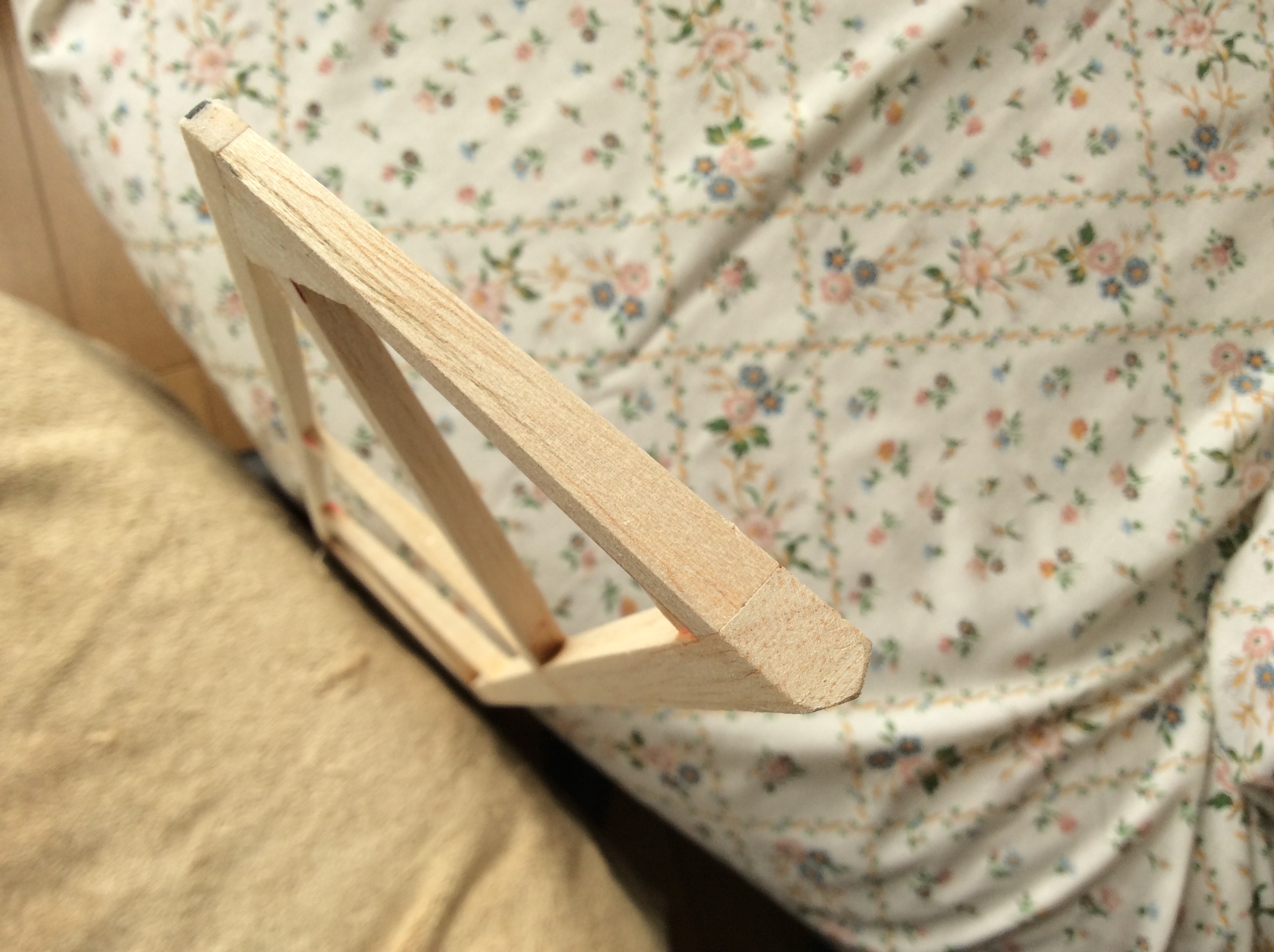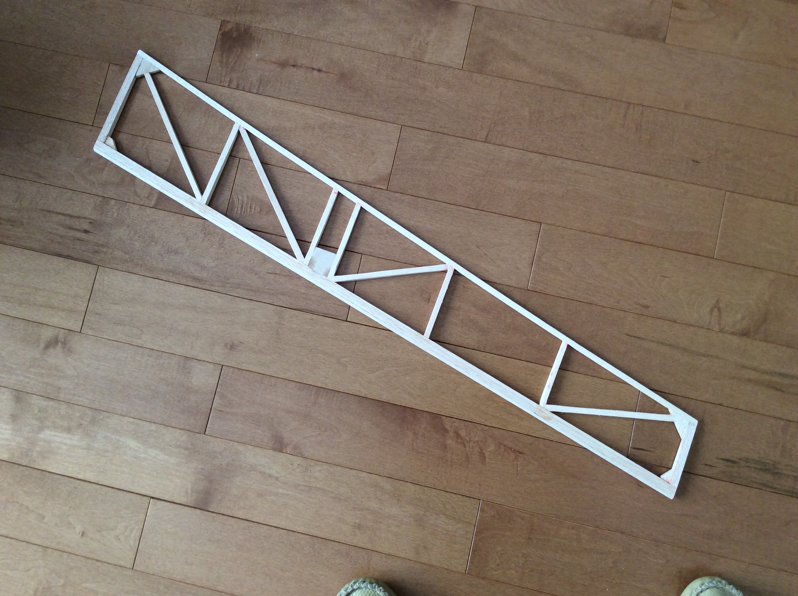 The aileron is built and sanded, it is a lot lighter but it took a little work. It is 3/8 thick at the leading edge and just under 3/16 at the trailing edge. Do not know if I will add the missing diagonal brace it just looks like I needs to be there.