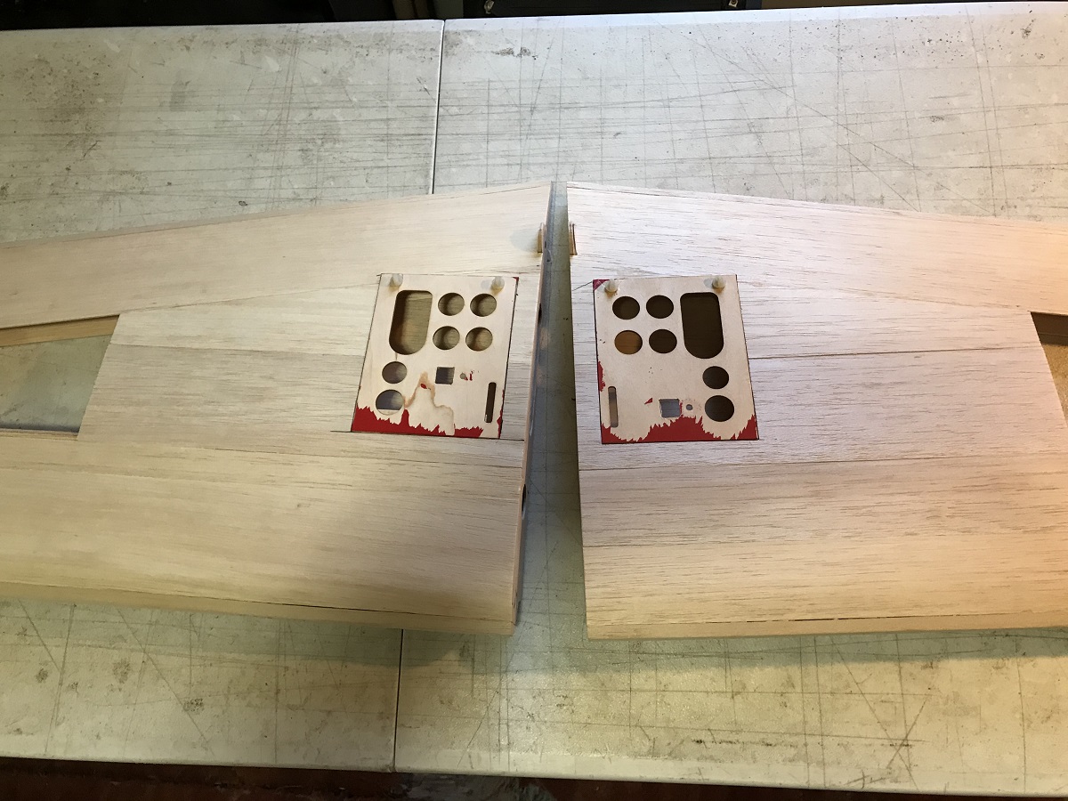 Got the incidence set on both wings at zero. I put some anti-rotation dowels in. I'm using some old hatch doors off of a ProX 260 that went in some years ago. I'm going with both wings so I can separate the batteries and equipment equally.