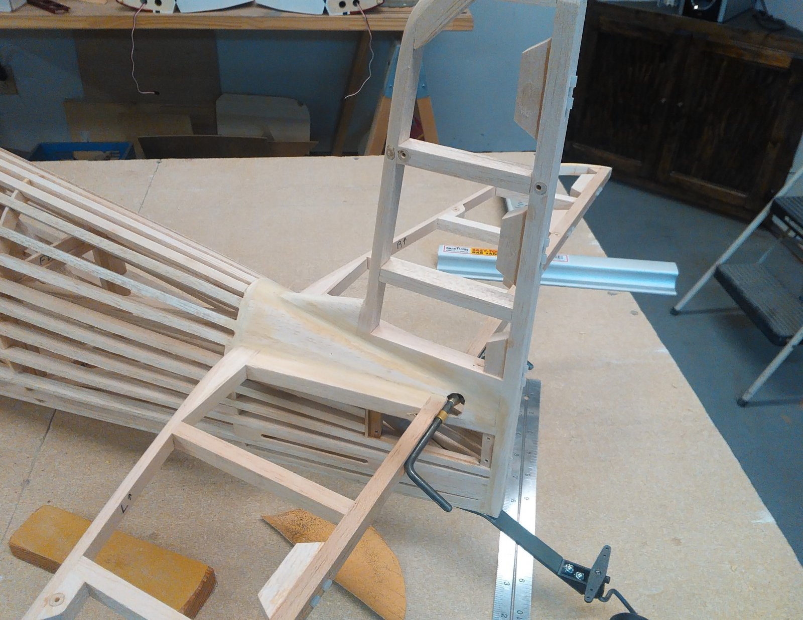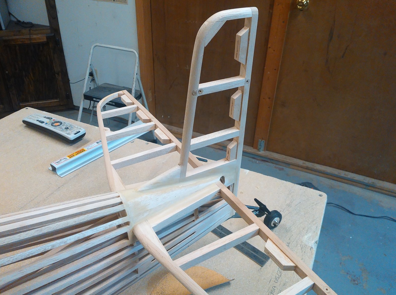 Tail glued on and all the filler blocks in, before any sanding and filling.
