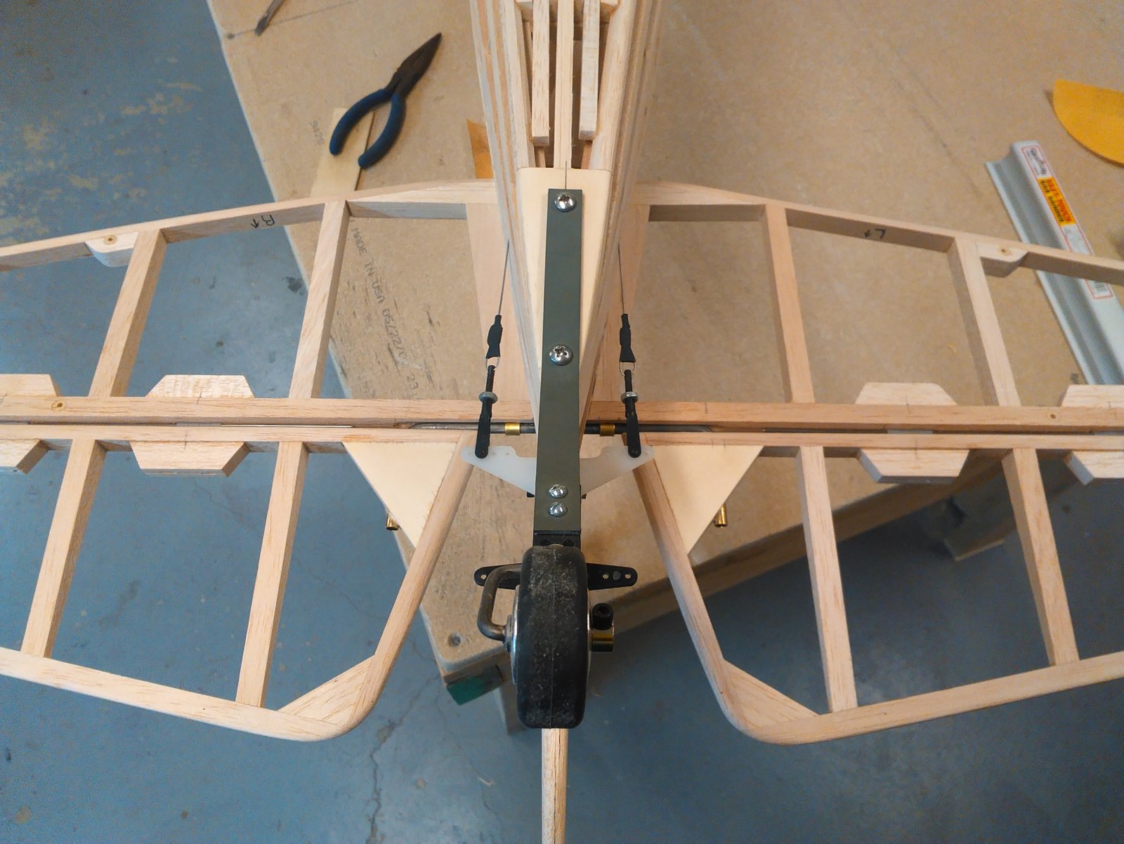 Control horns on, and rudder cables roughed out. I need to tweak the cable exits a bit and need to file a notch in the truss behind F9 as the cables are rubbing them. Nothing drastic, but will hold off on doing that until I get the servos mounted so I know the cables will be where they are supposed to be.