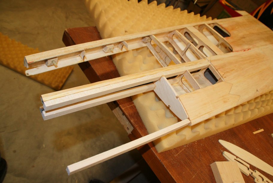 I only tacked the string on one side of the wing....since it's symmetrical it's pretty easy to get the "other" side correct. Of course, sight down the wing to verify this as well.