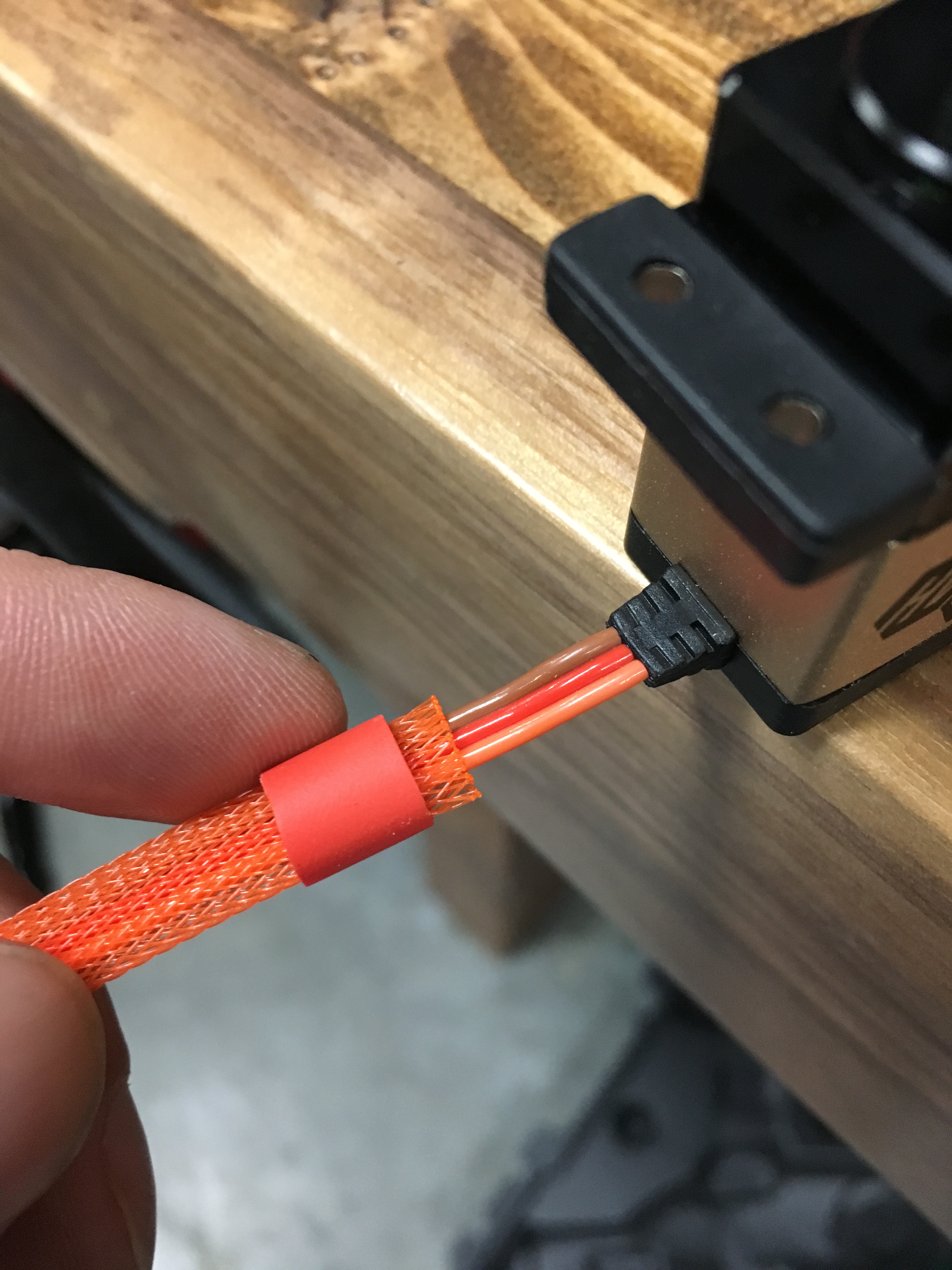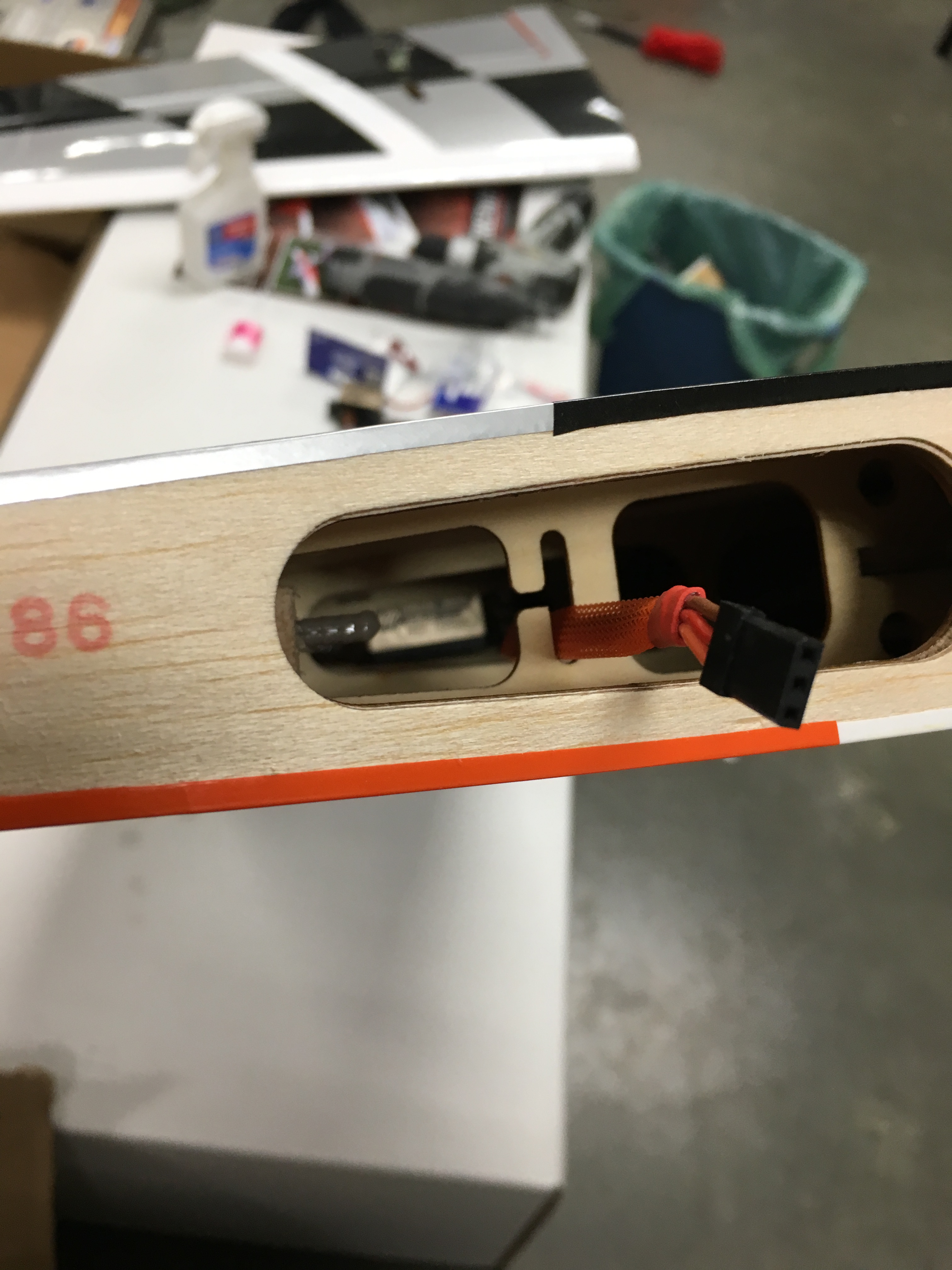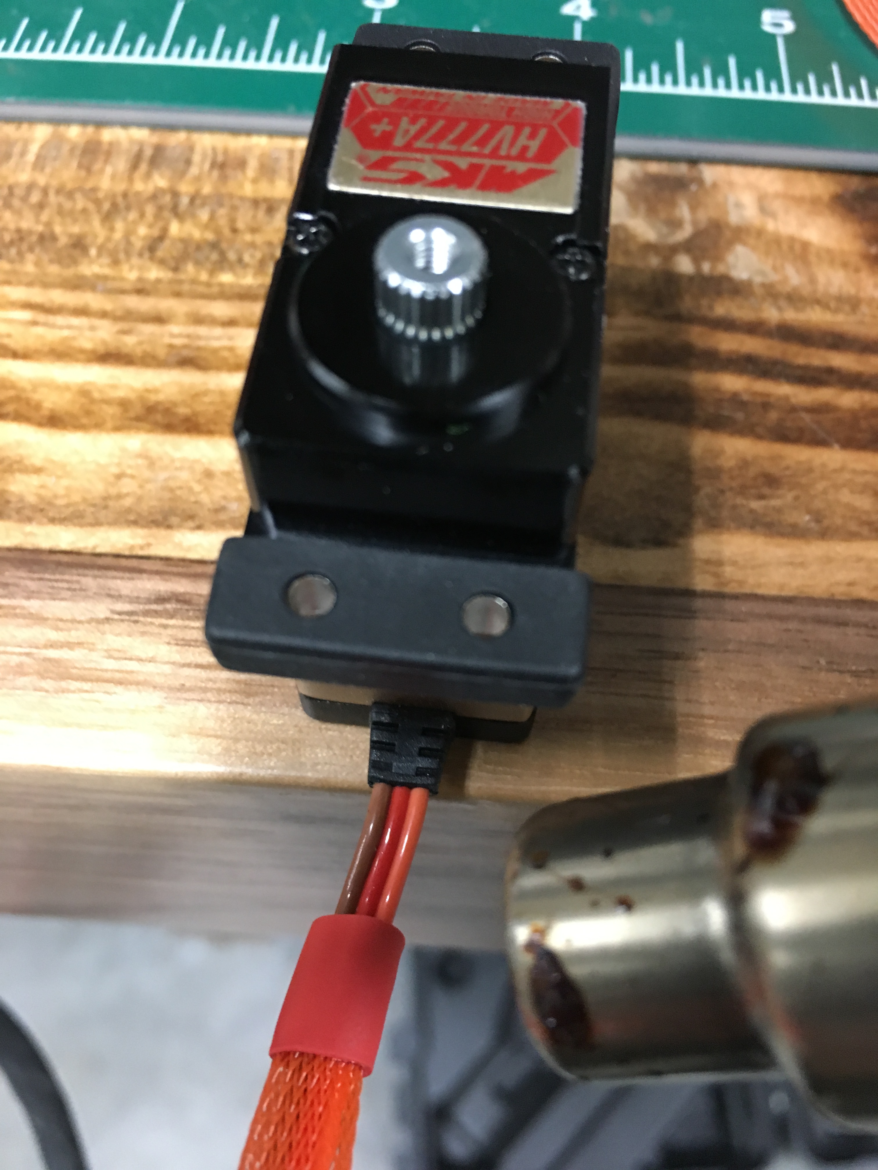 Used some snake skin looming from TDRC (the orange) and some red marine grade heat shrink. The marine grade heat shrink has adhesive inside which sticks to the looming and servo wires - keeping it from sliding all over the place (staying put).
