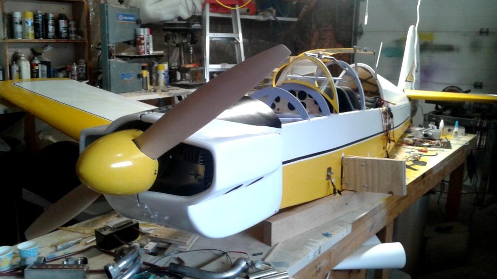 Well , 84 inches is not very big so doesn't need a ton of power but I personally like gas engines rather then glow but that's a personal opinion.Haven't got it in my hands yet. but looking around it seems to have been produced in the 80s. they used Hanno Prettners plans.