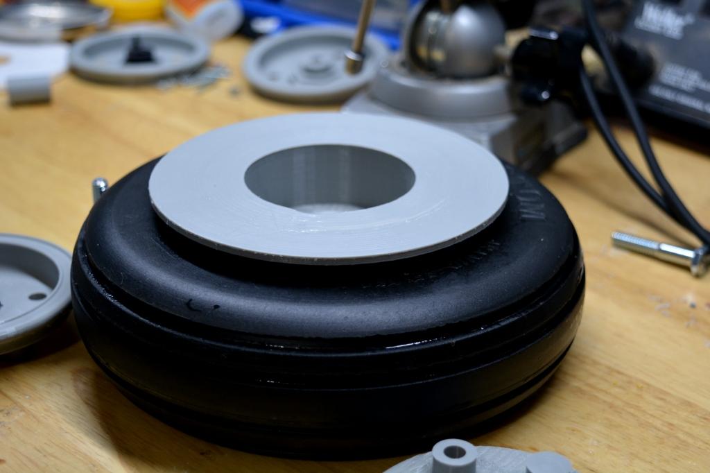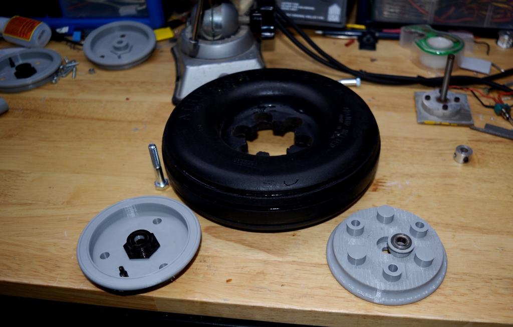 The making of the Mushshak scale wheels with non functionning disc brake, just printing now the caliper. The tires you see here are not printed but commercial by sullivan at nearly 7 inches