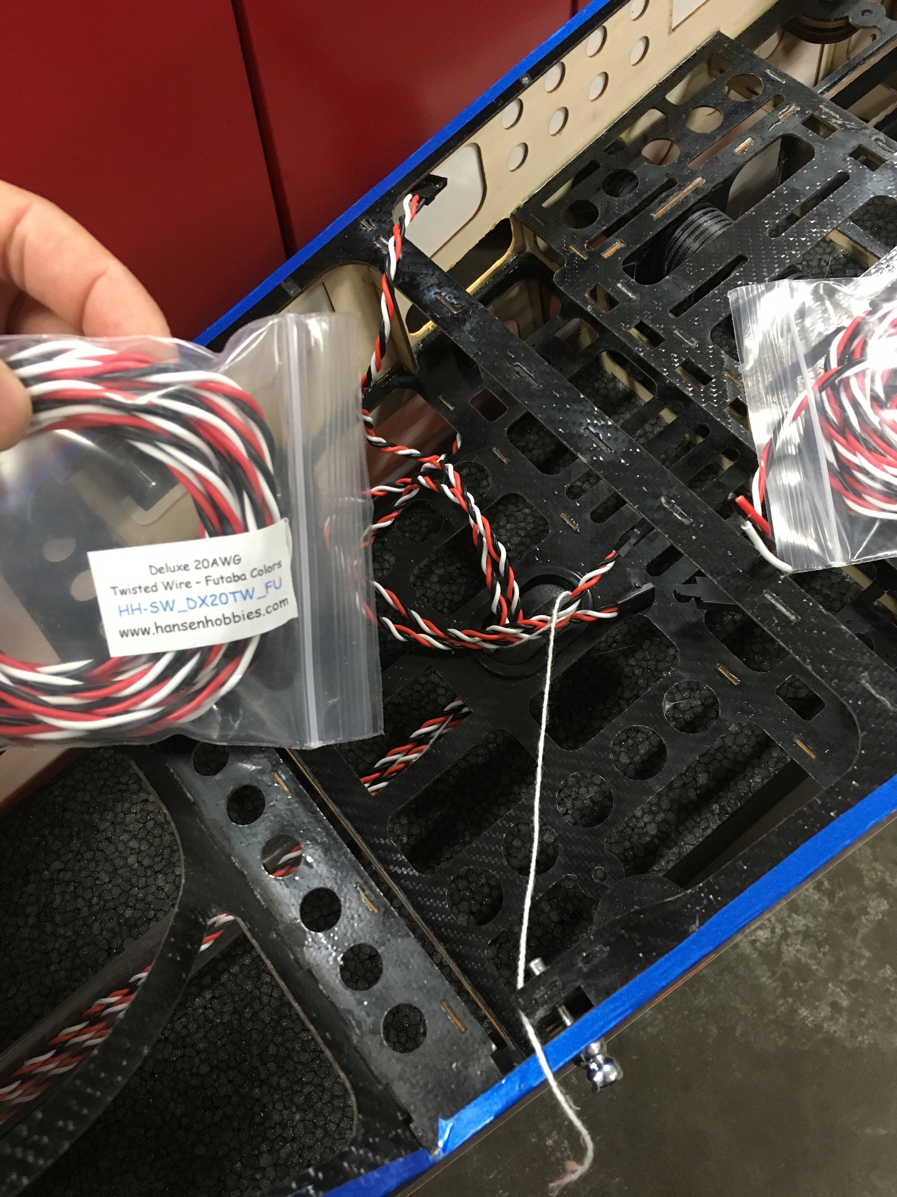 Something about long runs of wire to the tail and 22AWG just bugged me. So 20AWG from Hanson hobbies to the rescue. I’m crazy... I know. Brushless servos are very efficient. But it made my mind rest easy for some silly reason...