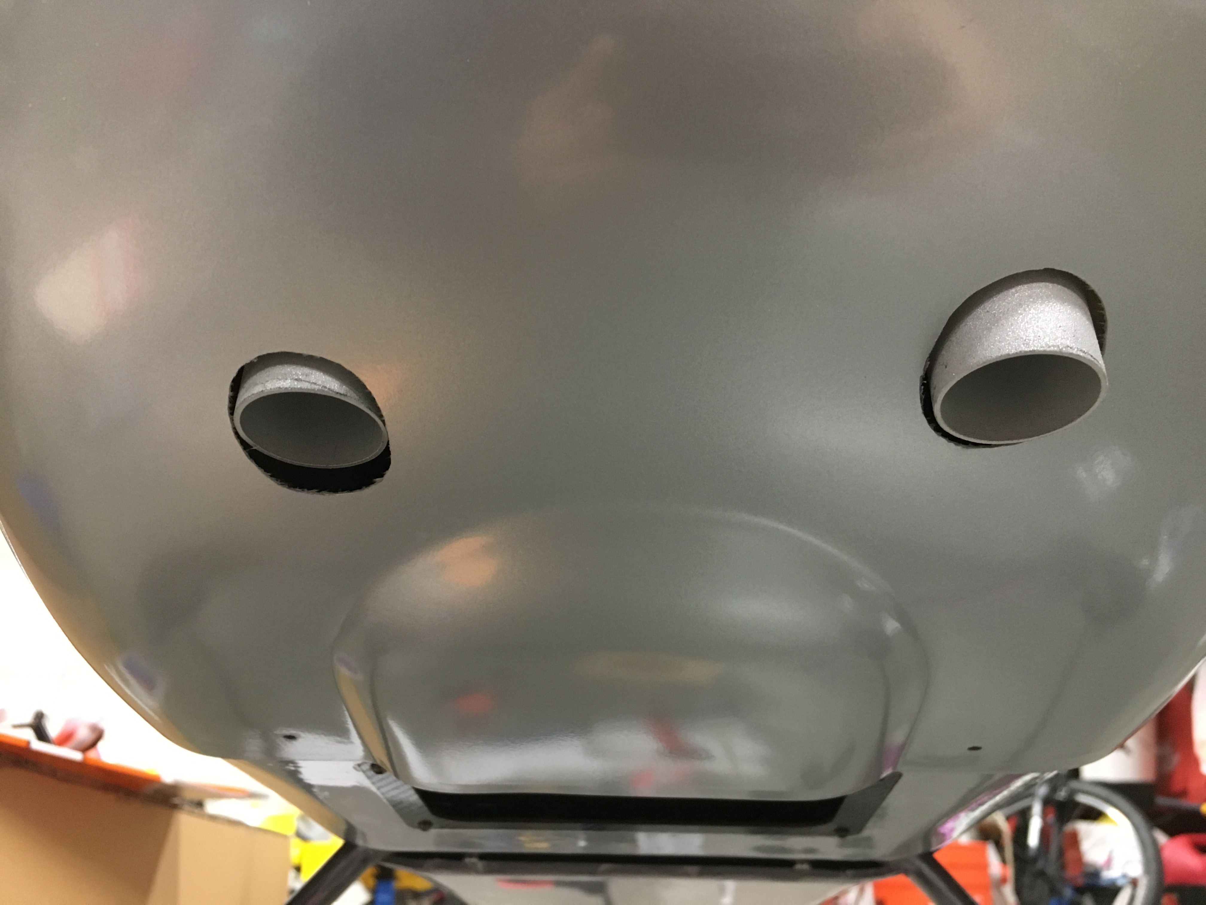 I think I'd try to find some exhaust extensions. Otherwise you're going to have one hell of a mess inside the cowl.Working on the cowl a bit. Slapped the mufflers on and cut some exit holes for them. With the bottom of the cowl touching the firewall, I pivoted it up until the front cyl muff touches. Mark with a pencil and let the dremel do the rest. A lot of on and off, but super easy with how big this thing is.