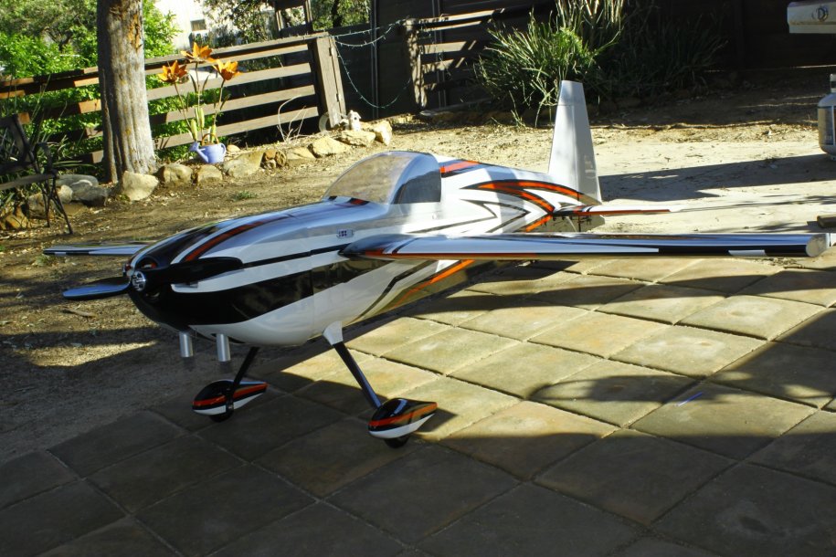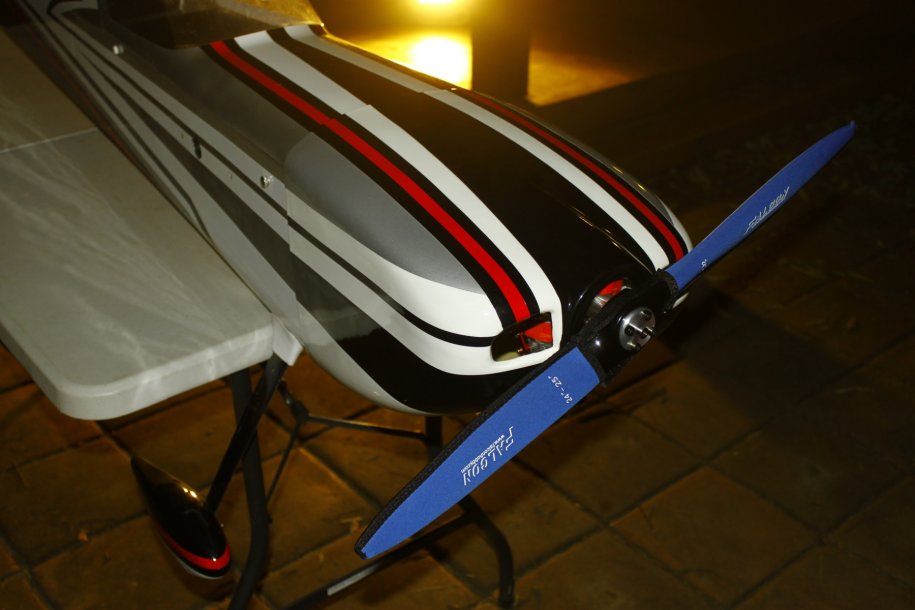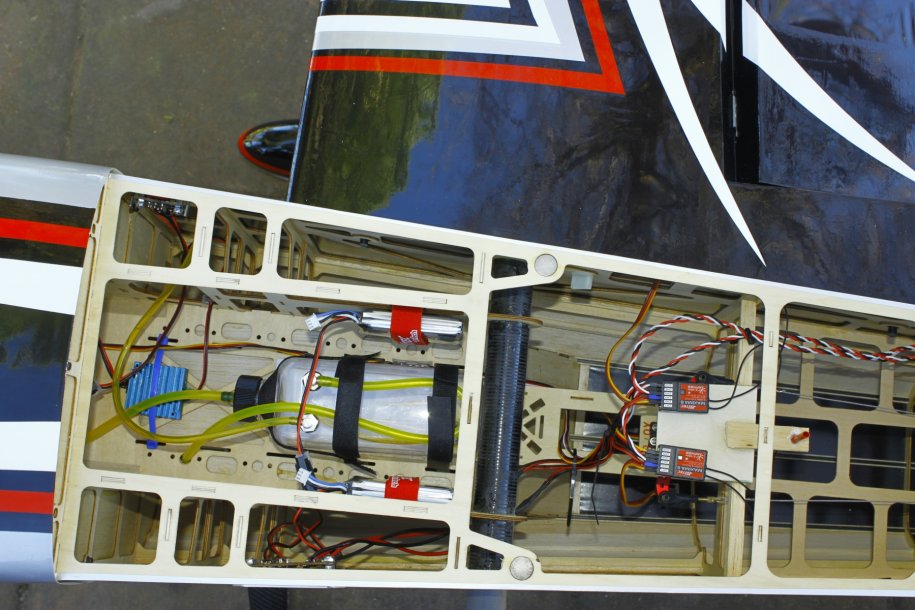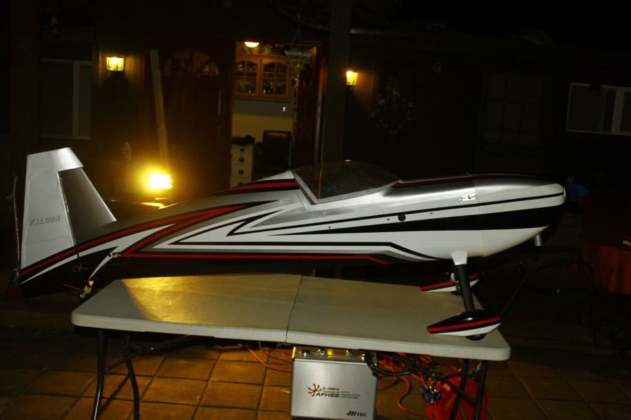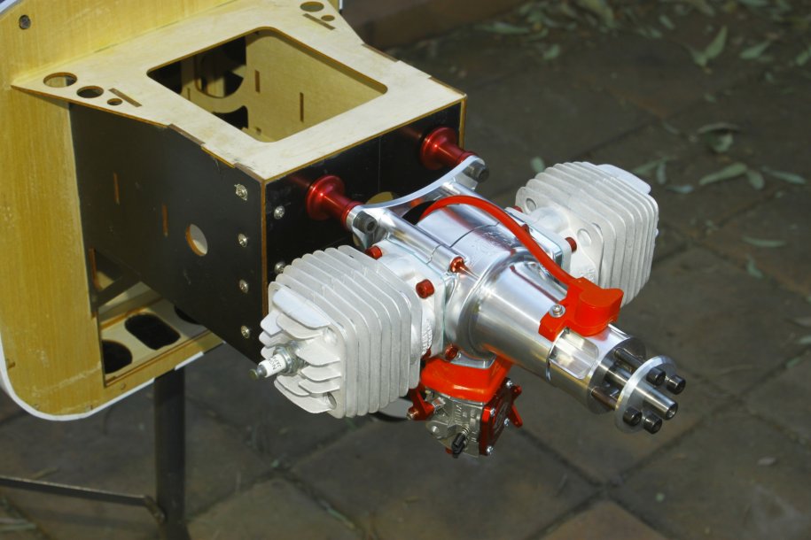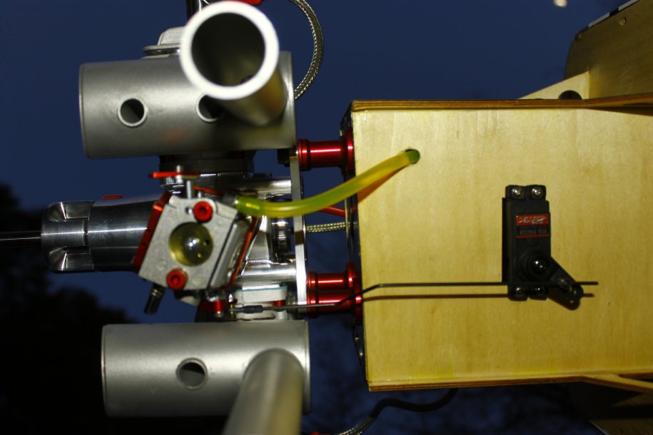 I got the tank plumbed up and decided to test run the engine. Just like a DA, started on the 4th flip, idled perfectly. With the Hitec HSB-9465SH servo controlling the throttle, she revs as fast as I can move my thumb!!!