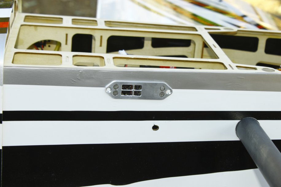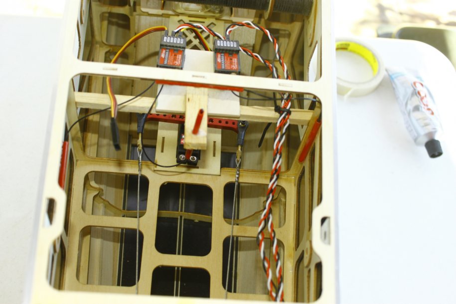 Back inside, I made a mounting plate for my Maxima 6 receivers, and used red tubes to route the antennas.
