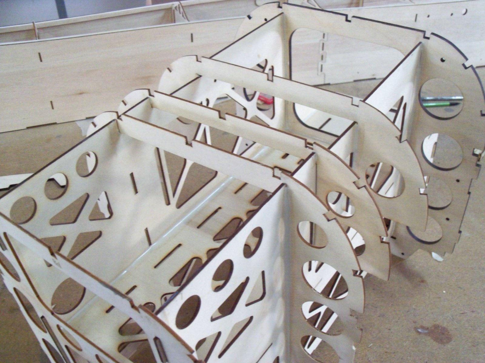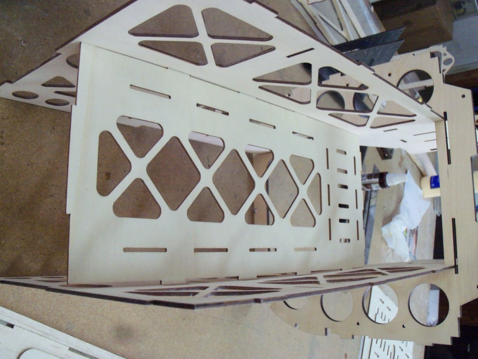 Picture #4A and 4B show us installing the bass wood stringers for the bottom section. We choose to use bass wood here just for handling purposes if you ever have to pick the plane up to put it in your trailer or something.