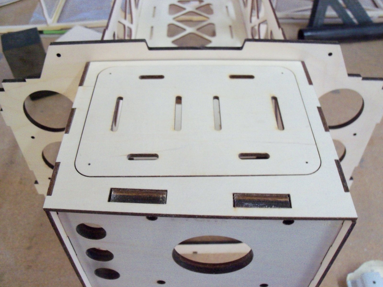 One thing that we did not do that may have been easier before sheeting the bottom was to install the carbon fiber socket in the fuselage. Not that it is an issue to do it later, we would have just had a little more room to work without the bottom sheeting on. What can I say, we were a little excited to see the fuselage closer to completion! http://www.GiantScaleNews.com/forums/images/smilies/209.gif