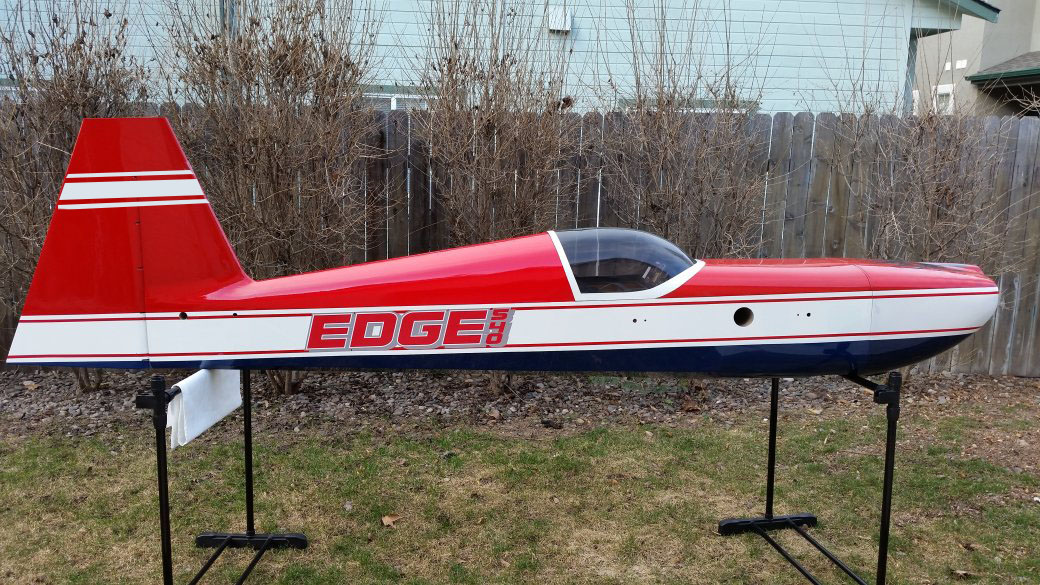 What do you do on a blustery February afternoon when it is too cold and the wind is blowing too hard to fly? Well, you put stripes and graphics on your 50% Edge 540. I was afraid I would not have enough Missile Red left over from the aft turtle deck and rudder, but it worked out just right. Got the stripes down and transplanted the "Edge 540" graphics. Not sure yet Terry if I am going to leave the rudder all red or dream up something cool. I am actually open to suggestions here. As for the checks, Umm....no more checks. LOL.... Not sure how I would incorporate them and still make it look good. Suggestions Chris? Anyway, It is starting to look like I was hoping it would. I am pretty certain it will not be missed in a big blue sky. I need to find a really cool looking Earle @Pistolera style pilot for this big boy. Can't be having such a nice looking instrument panel and no pilot?! That would just be not right. I still have "A LOT" I want to do to really sharpen this thing up. Originally I was going to go slow but now I see that getting in on it now still may not be enough time to do all I want to do. Guess I will just keep plugging away.