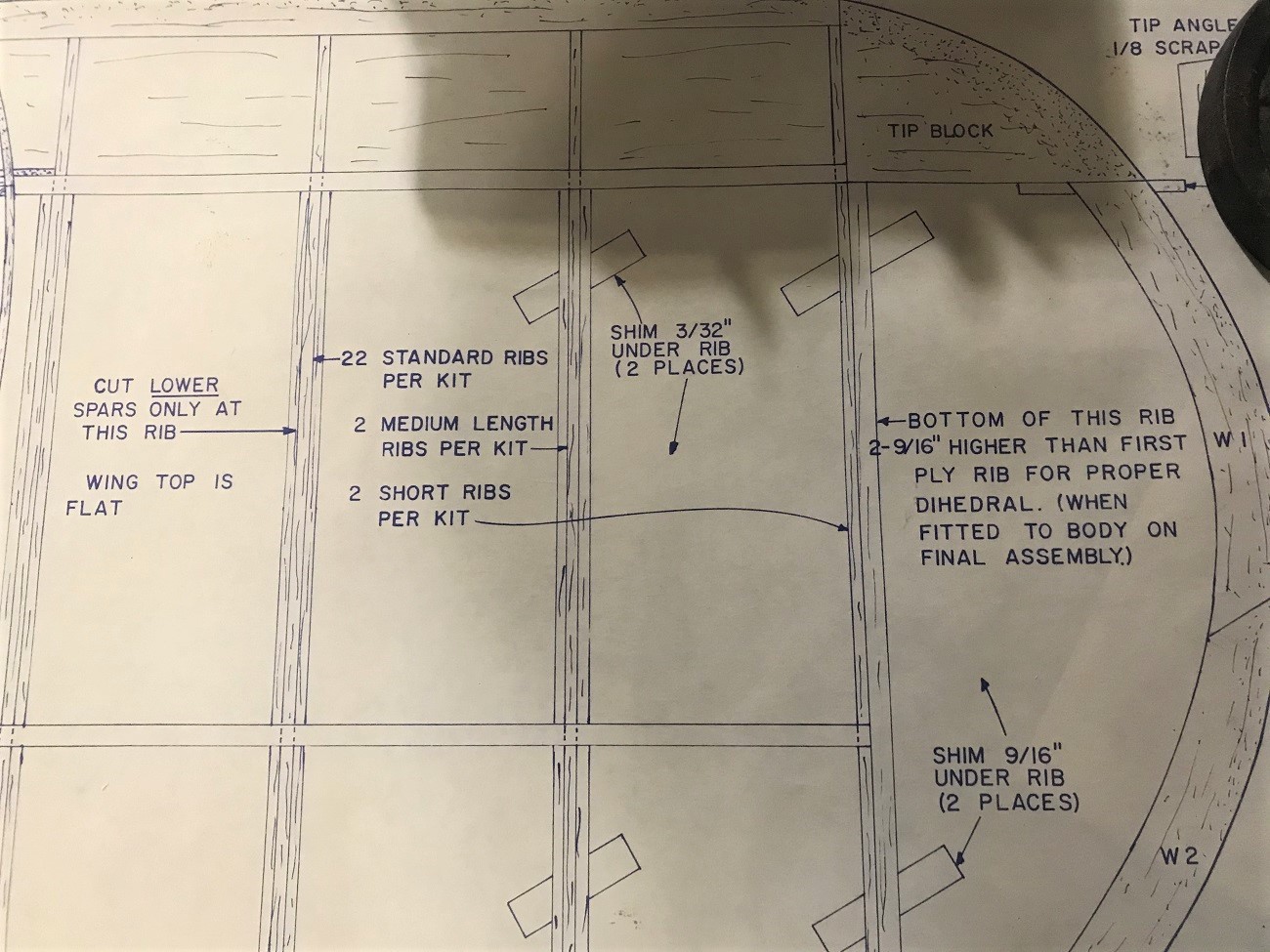 Getting some of the wing mods figured out. I'm going with one extra rib on the ailerons, and flaps. The wing will also have a wing tube extending into the 5th rib. I'll probably remove the forward dowl, since I'll be using a wing tube. I'm also switching rib #2, " ply" with rib #5, balsa. Flaps will start at rib 3.