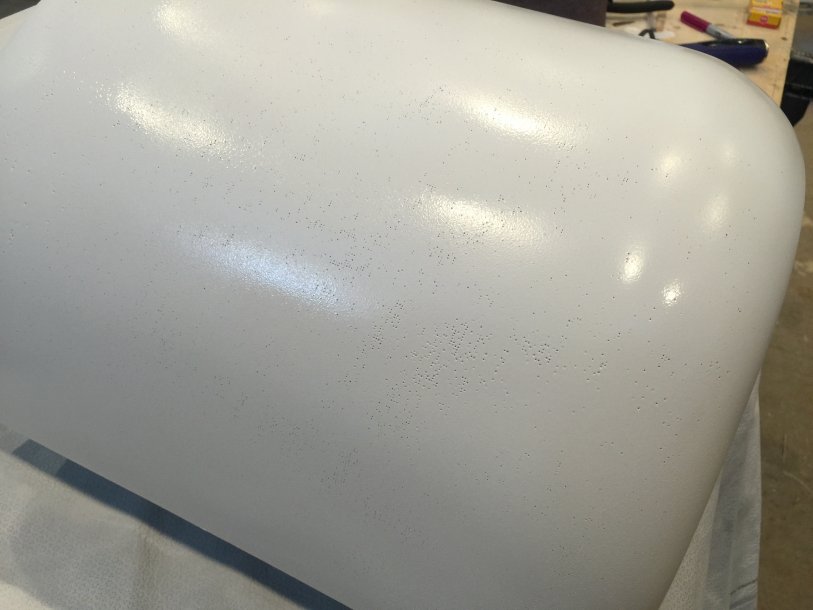 Pinholes, fun, fun, fun!Three coats of primer are on now! Can you see what I see??