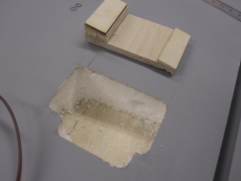 I hate the look of servos hanging out of the wing (and also the geometry of the linkage), so I want to turn my aileron servos on their side and then cover them. I've also never built a foam cor wing before. Take a look at the photos attached...I made some mounts as pictured. There is nothing to mount this to except the balsa sheet which is the top of the wing, and the surrounding foam. Since it is foam, I think the best plan is to glue this into the wing with Gorilla Glue since it is similar to the foam and I think that it will make a better bond than Hysol. I could also build sides to make it more like a typical servo box which would add more glue surface area.
