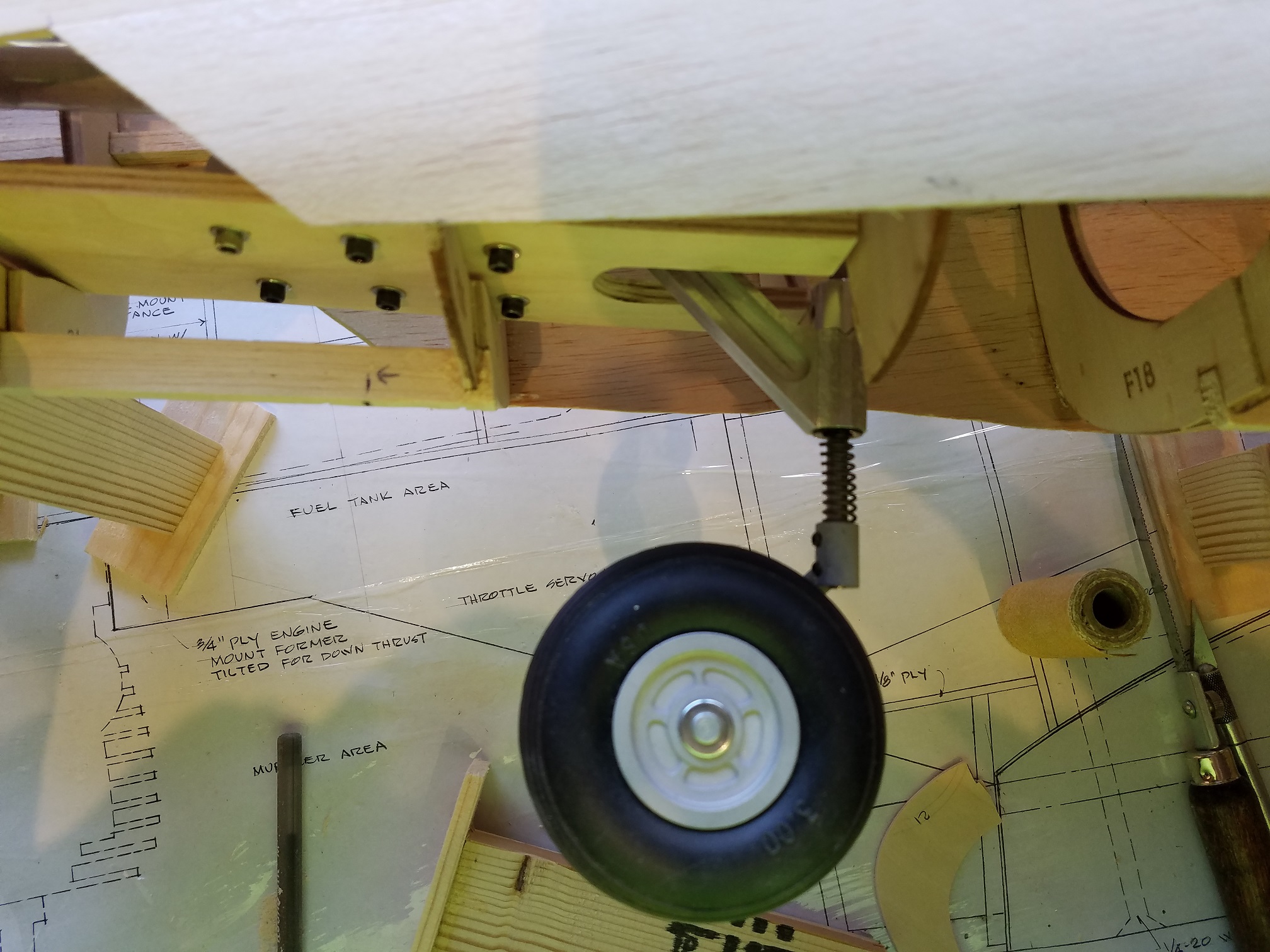 Photos from Dec. 26 and 27. This tail gear structure was not really difficult. Just took a little time to figure out how to approach it. I knew I needed solid support for the Sierra gear. I knew also I needed that structure to be light. I just do not want any tail weight on this bird. So this is what I came up with.
