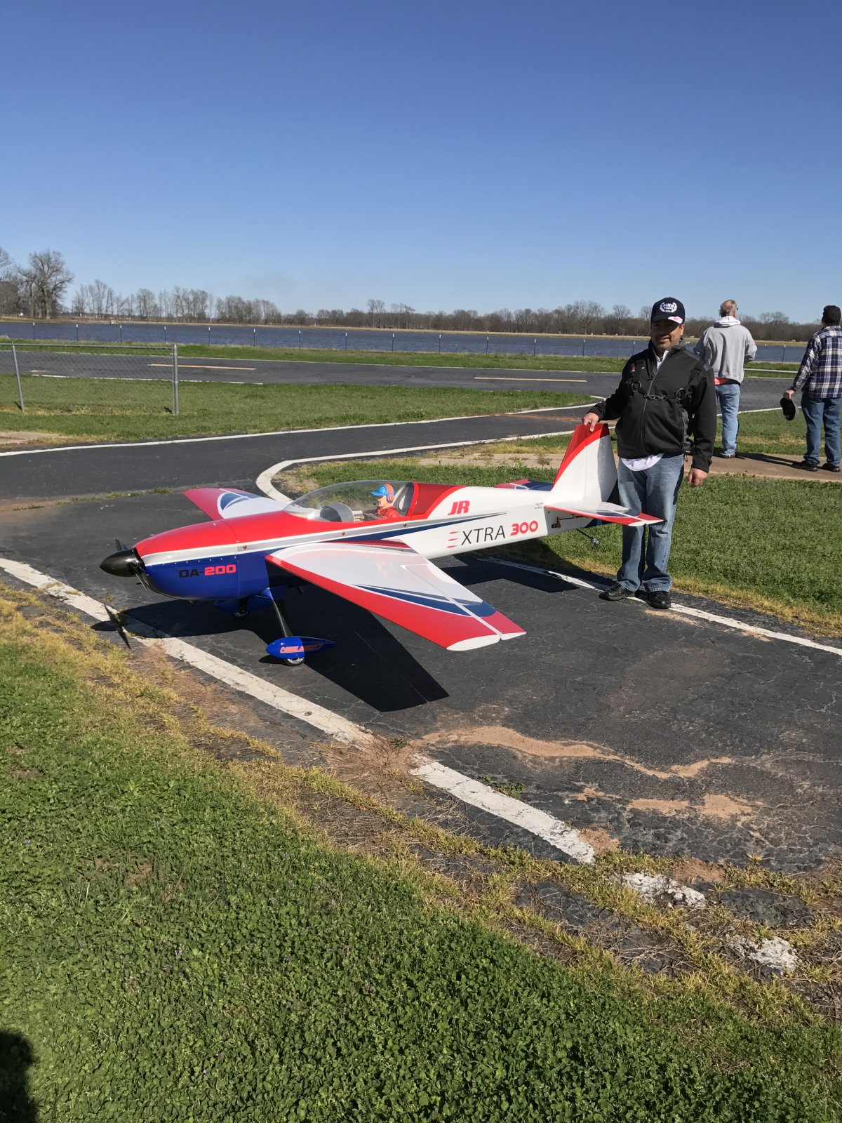 I was able to get 2 flights in, I spent a good deal of time at the field programming the fail safe and then doing a range test, since it was also the maiden flight for the new transmitter. I was worried/nervous, and to break the nerves, I started the day putting in 3 flights with my Extreme Flight 91" Extra with a DA 85, and then I moved up to my Dalton Yak, and put two flights in her, practicing the 2017 Advanced sequence on all flights. After that, I told Stacey, "I AM READY< LEt's DO this!!!"