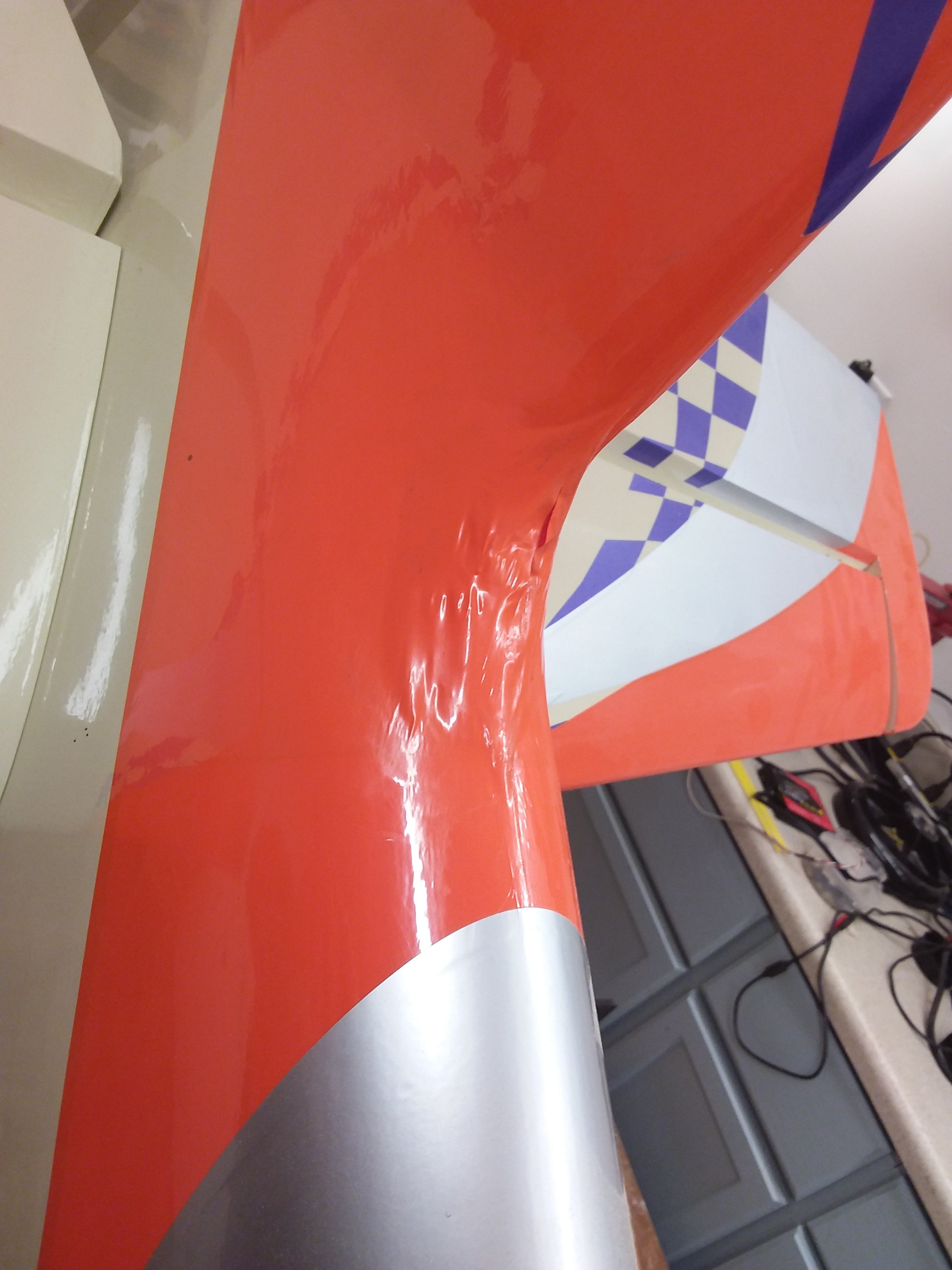 Finally going to take this to the field and fire her up and i notice separating monocote. Tried to touch it up with an iron and it got worse. May need to fly in @stangflyer and borrow his covering repair skills. View attachment 104530