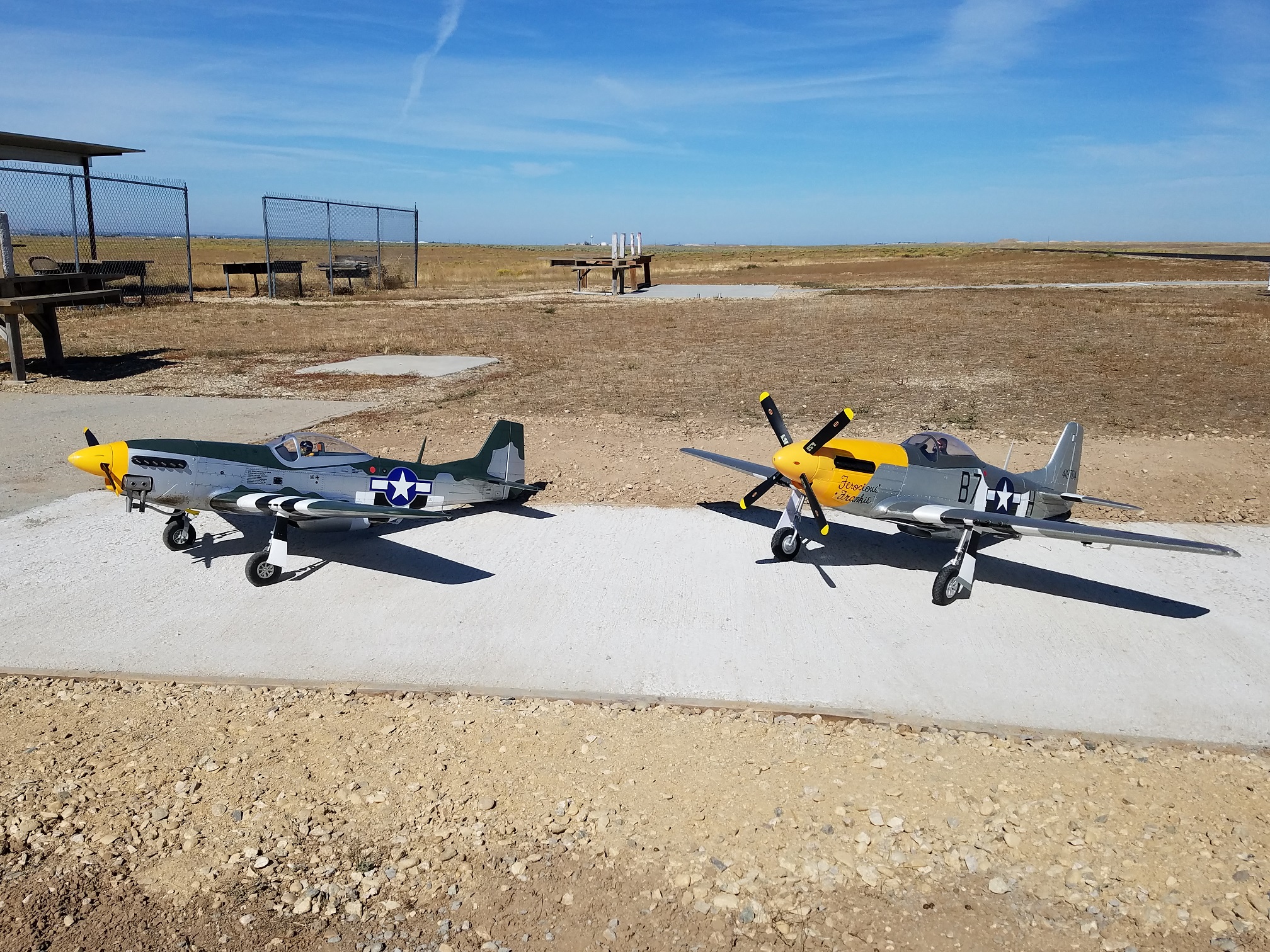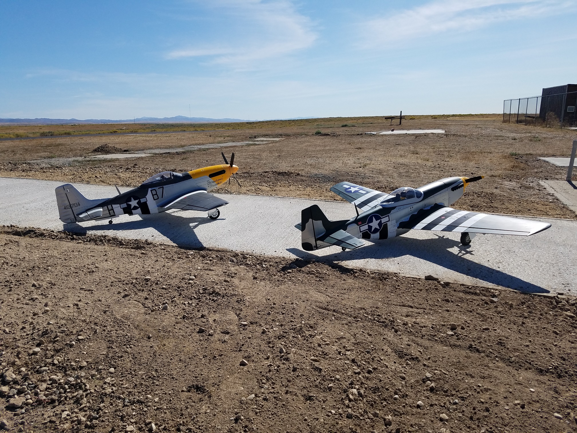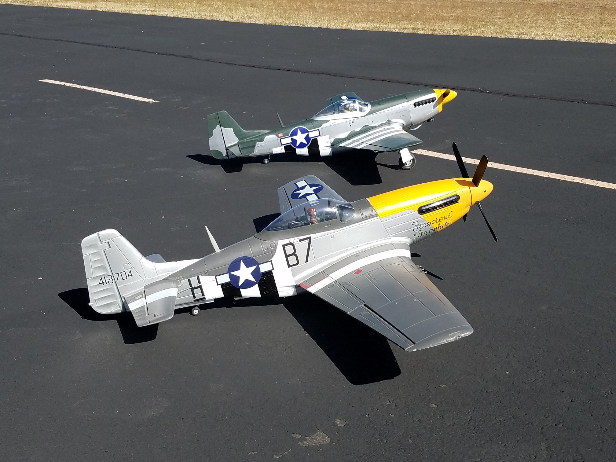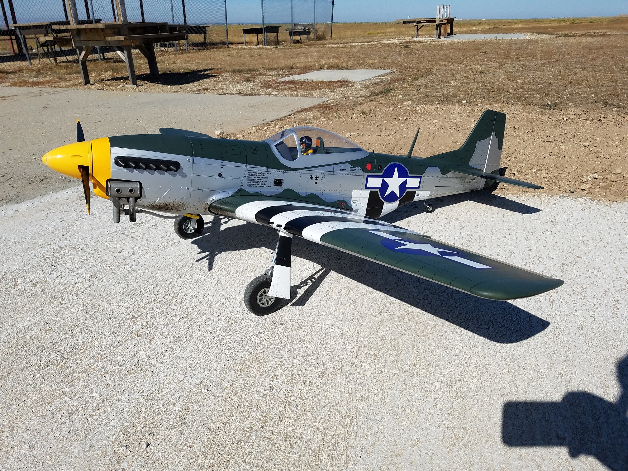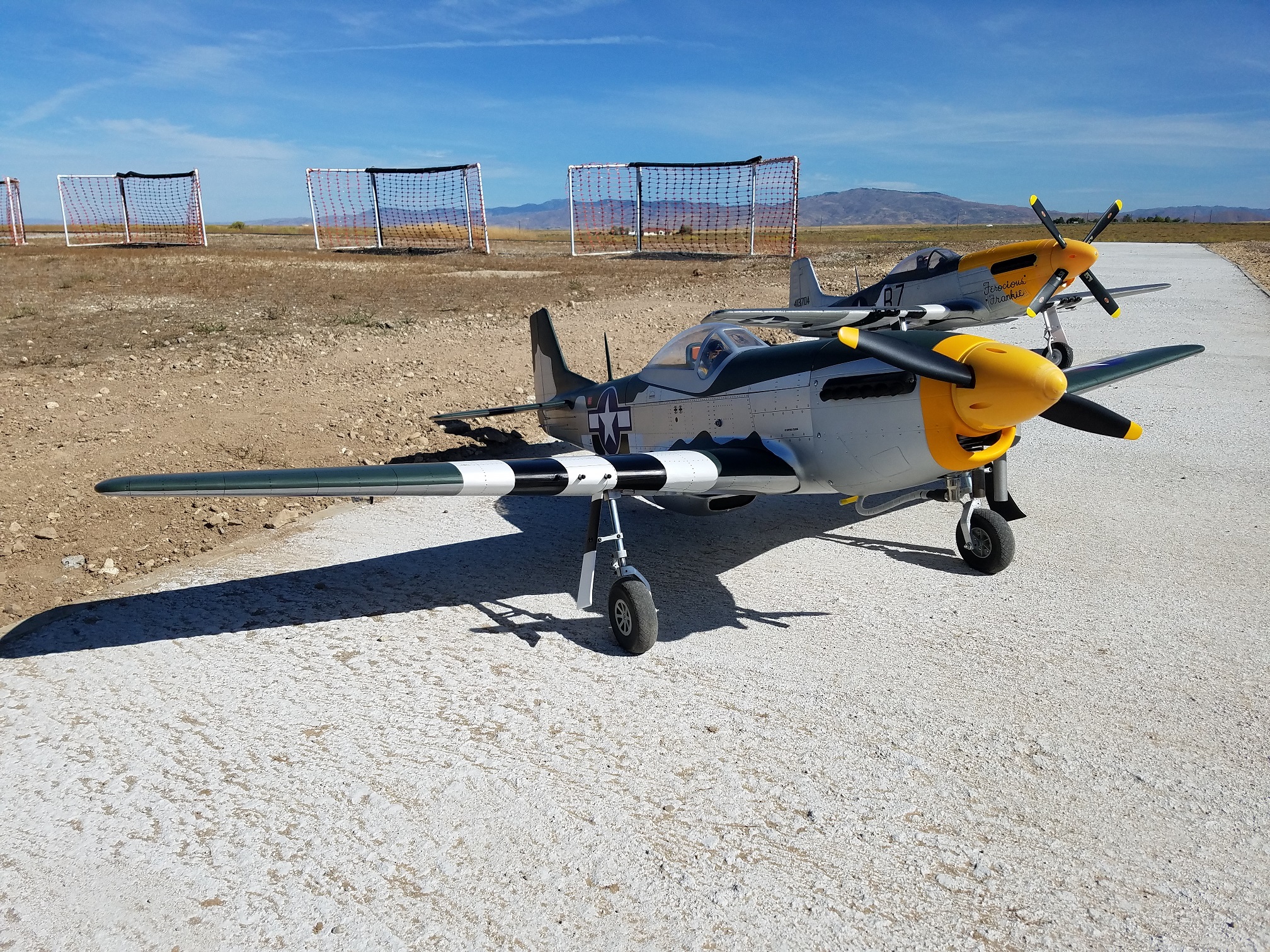I also bought one of the new H9 20cc Mustangs. I installed an RCGF 20cc gasser and man that thing flew great. Well, that was "UNTIL" I pulled a tight loop too close to the ground. Yeah, not a pretty ending. See fellas? I can do dumb things too. LOL. Fortunately everything came through in perfect shape. Except the airframe. DOAH! I loved the plane so what did I do? Bought a second and put my brand new RCGF 26cc gasser in it. Dang does that thing flat scoot. So what does a guy with two little Stangs do? Well he takes them both to the field for some much needed sorties and pushing the enemy back behind enemy lines. LOL.