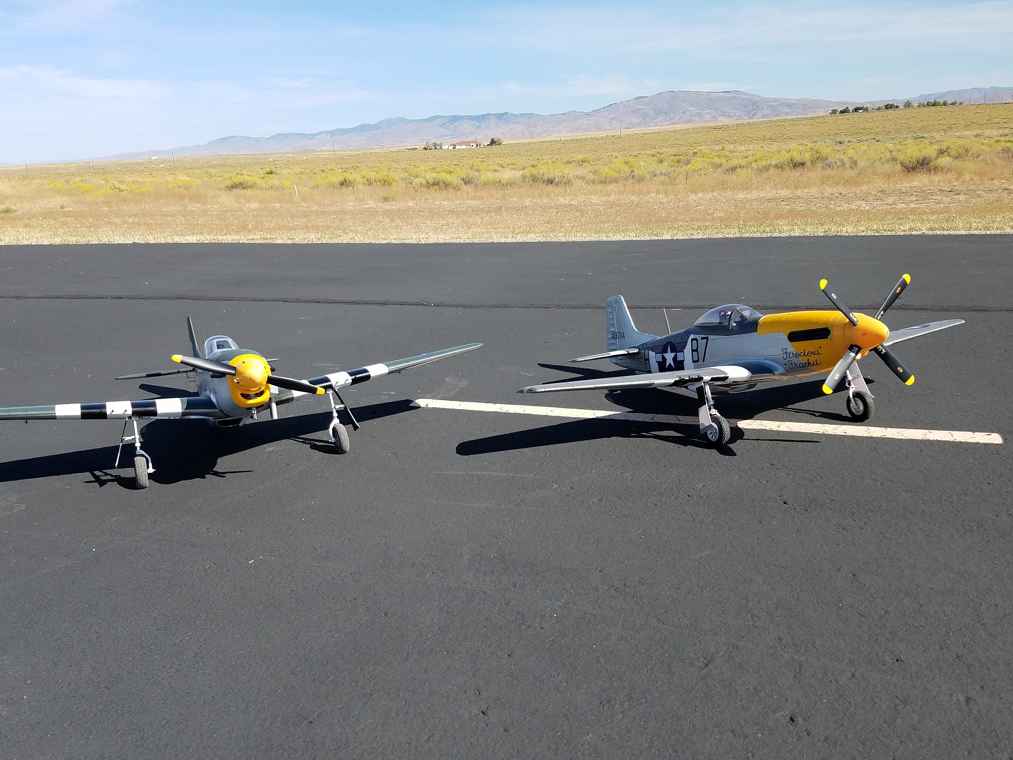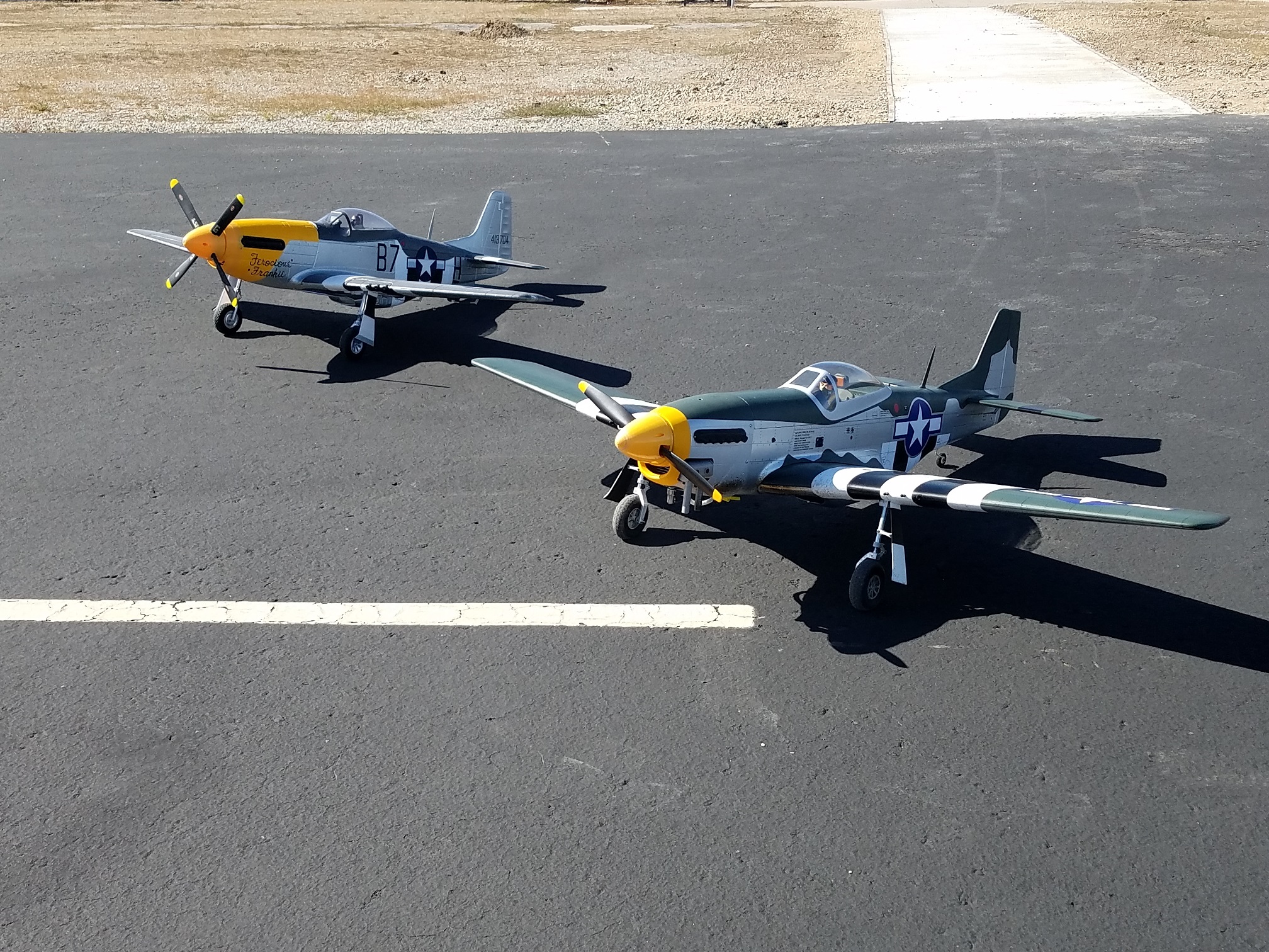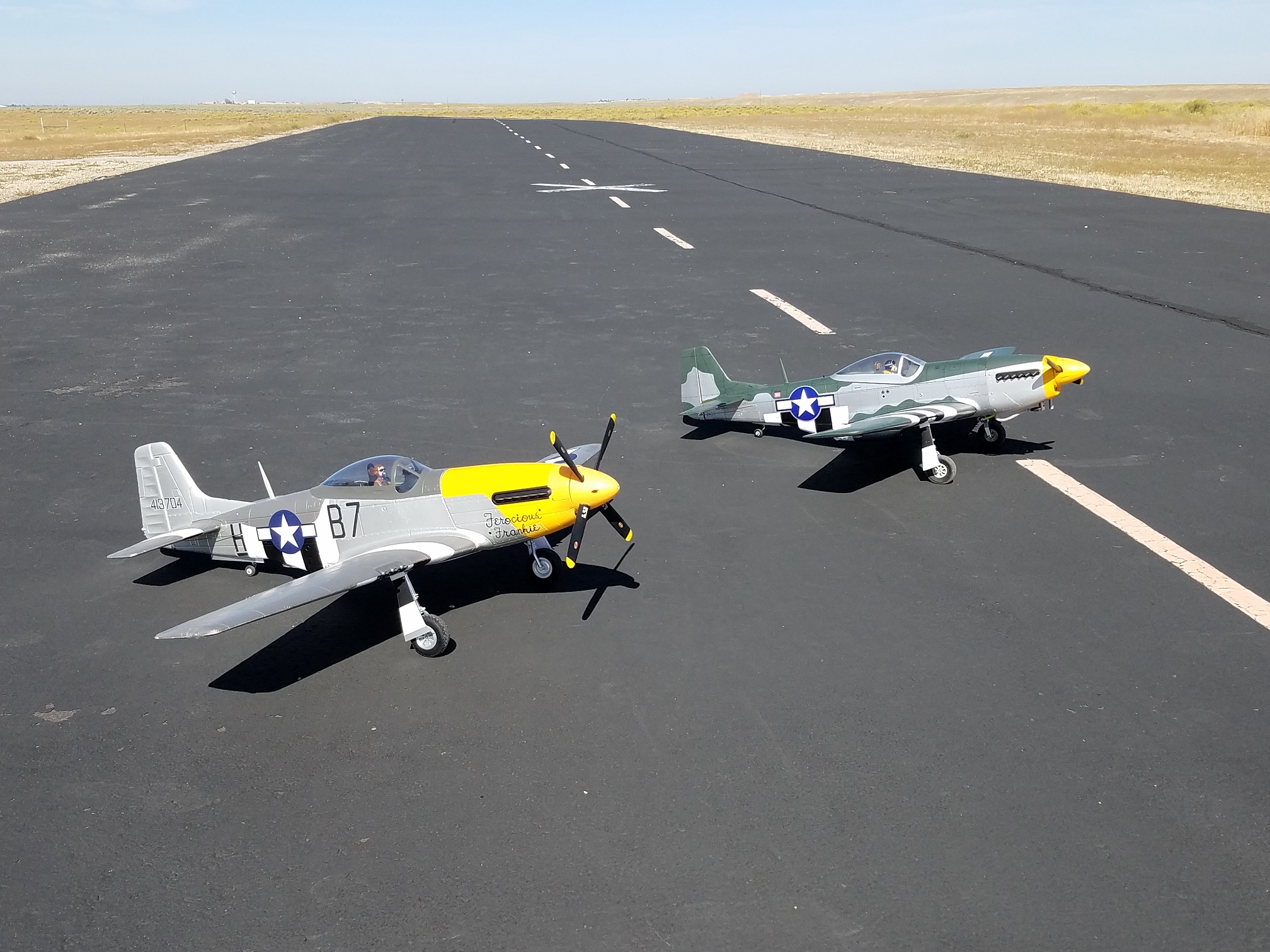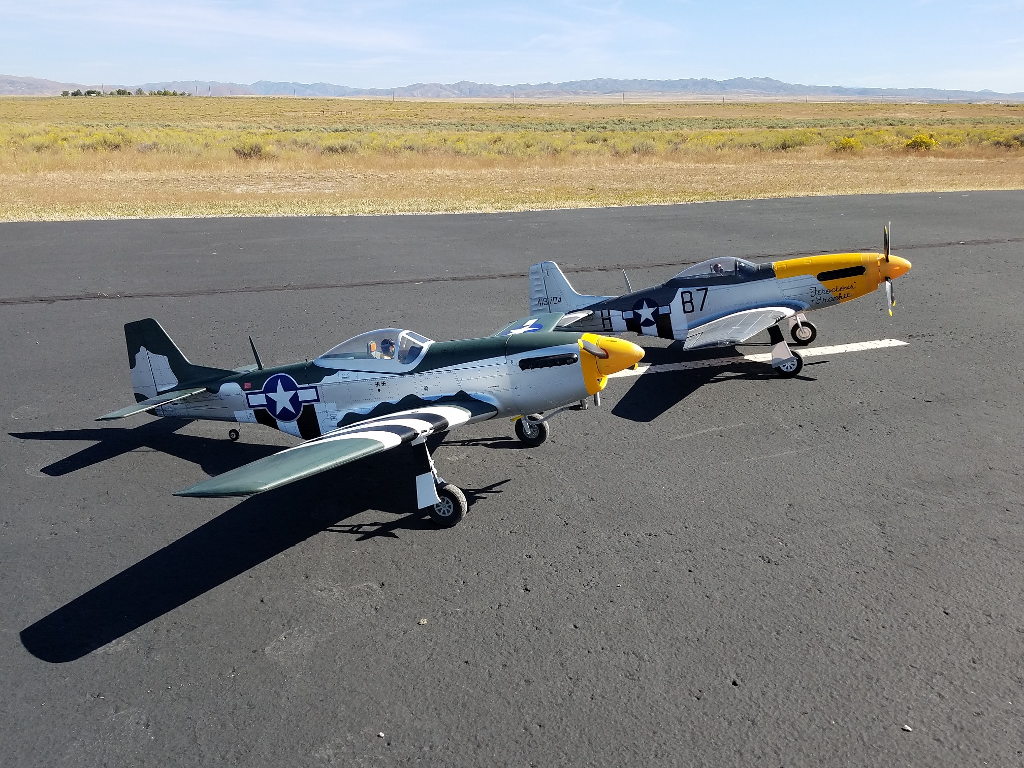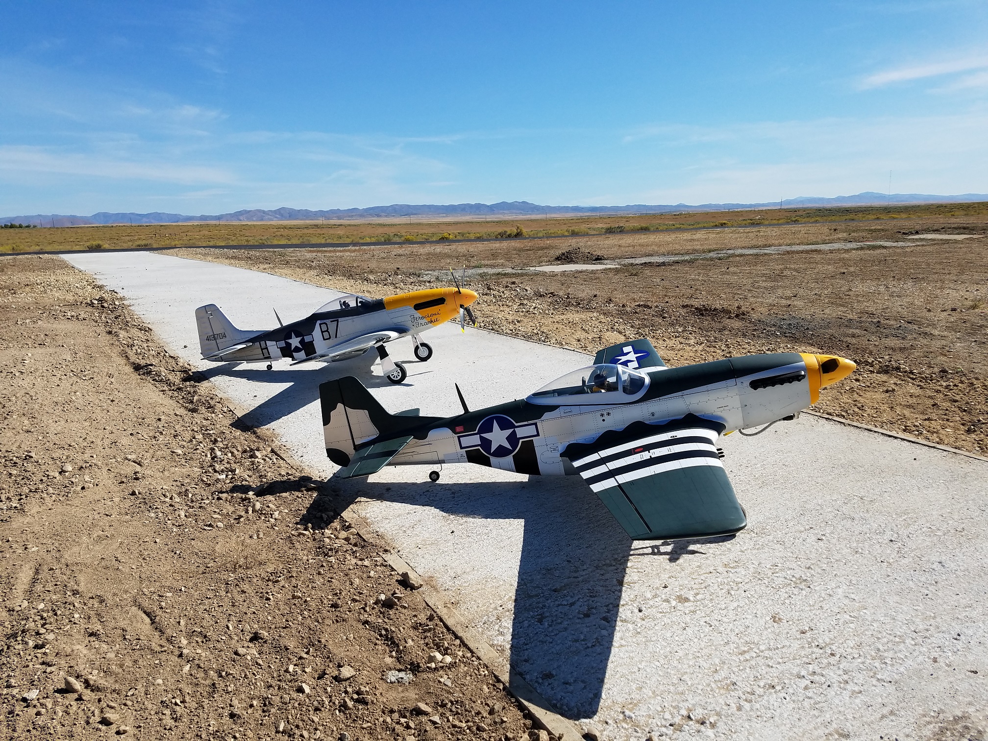 I also bought one of the new H9 20cc Mustangs. I installed an RCGF 20cc gasser and man that thing flew great. Well, that was "UNTIL" I pulled a tight loop too close to the ground. Yeah, not a pretty ending. See fellas? I can do dumb things too. LOL. Fortunately everything came through in perfect shape. Except the airframe. DOAH! I loved the plane so what did I do? Bought a second and put my brand new RCGF 26cc gasser in it. Dang does that thing flat scoot. So what does a guy with two little Stangs do? Well he takes them both to the field for some much needed sorties and pushing the enemy back behind enemy lines. LOL.