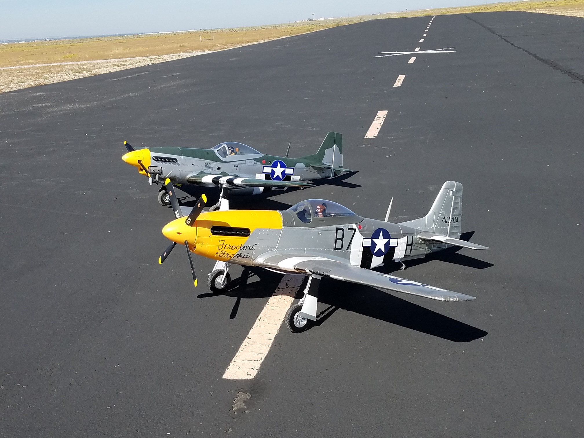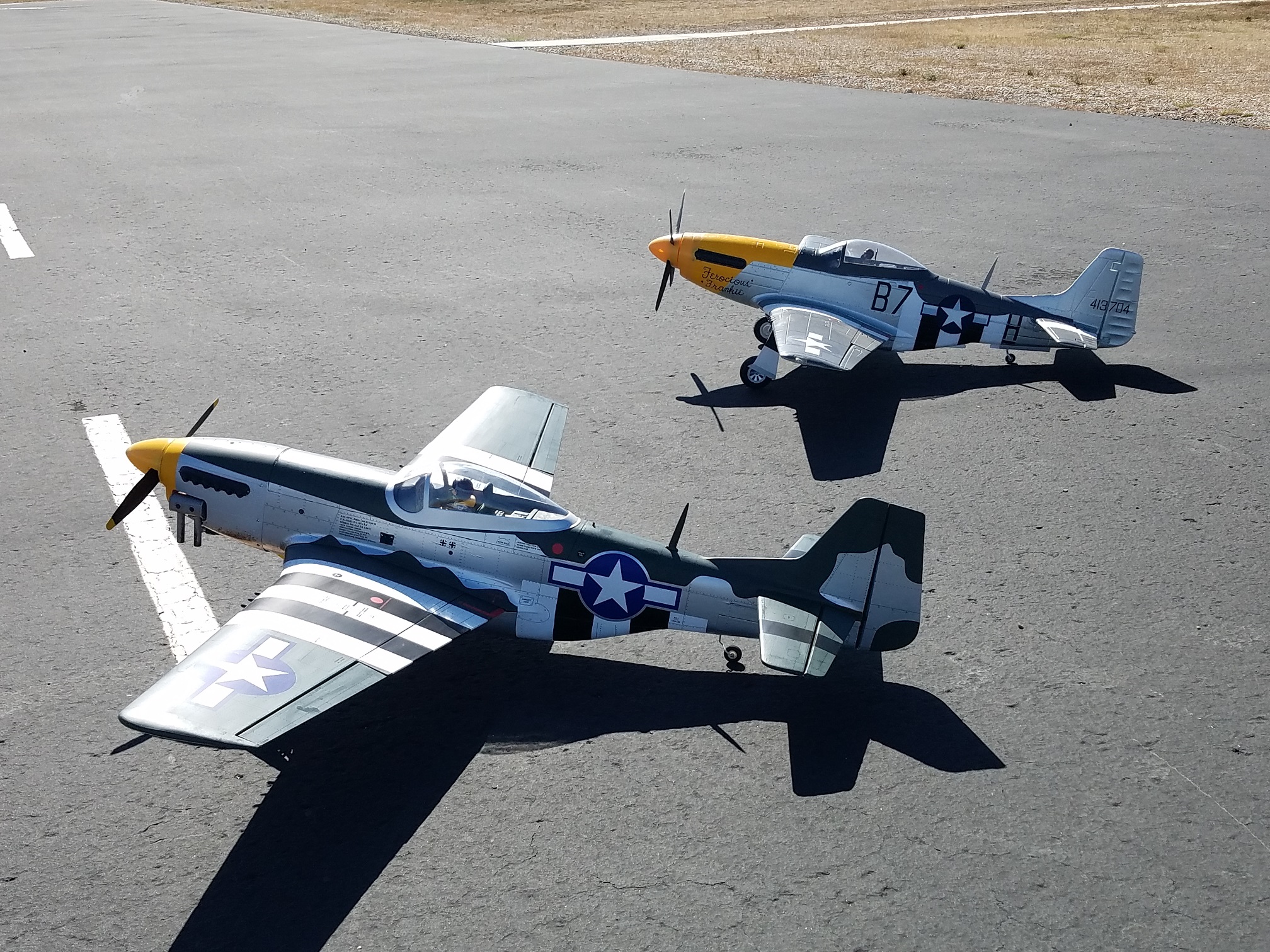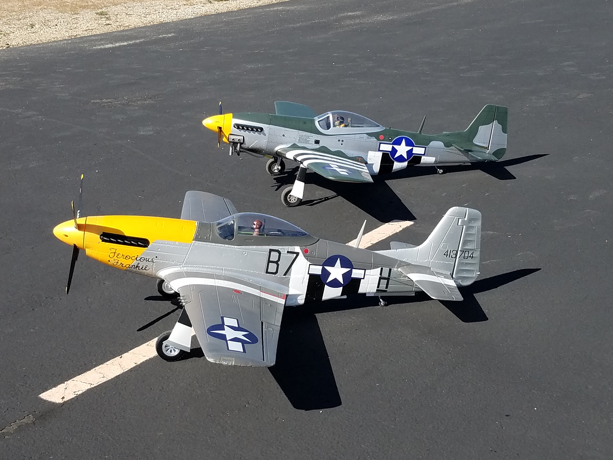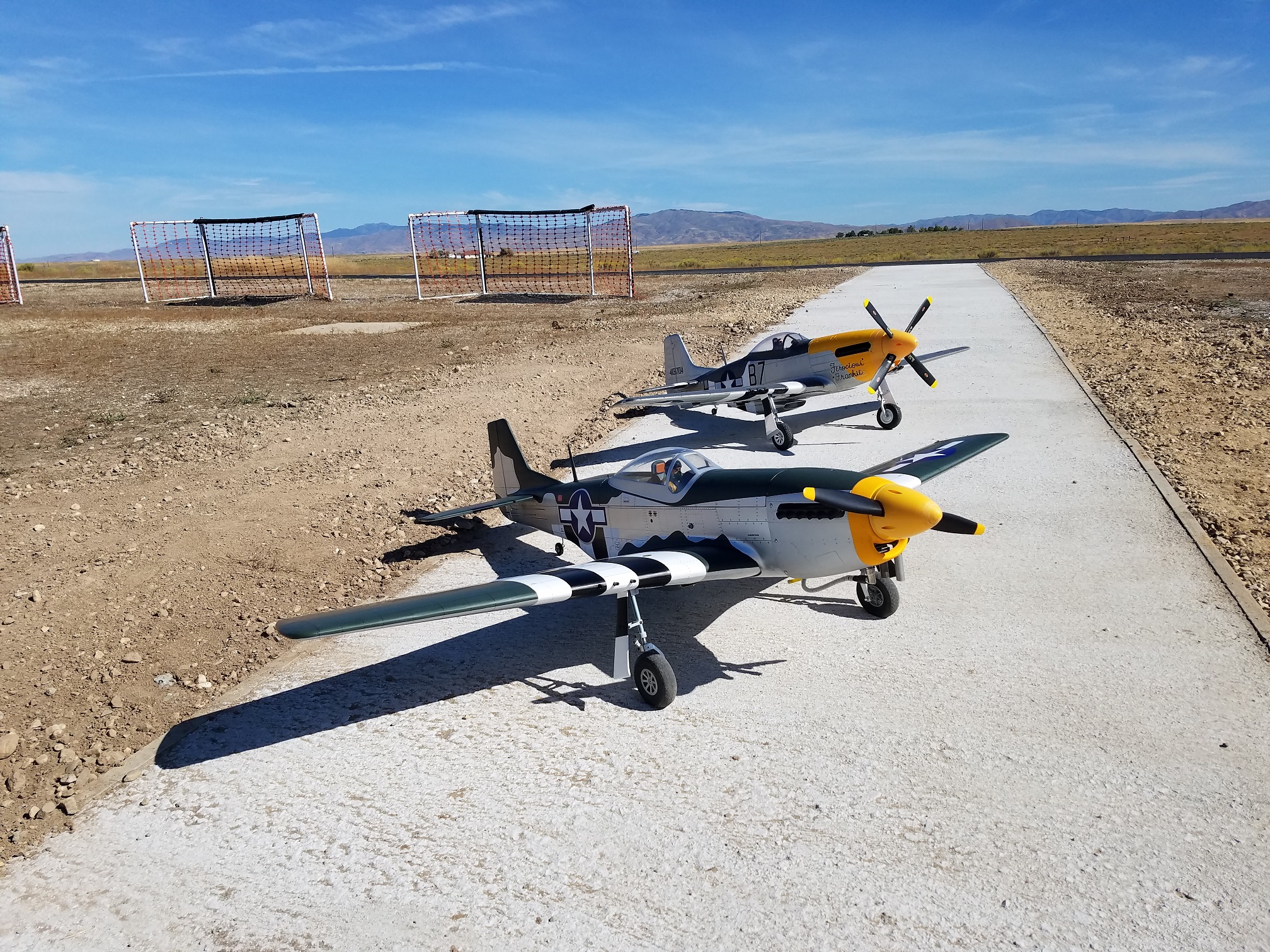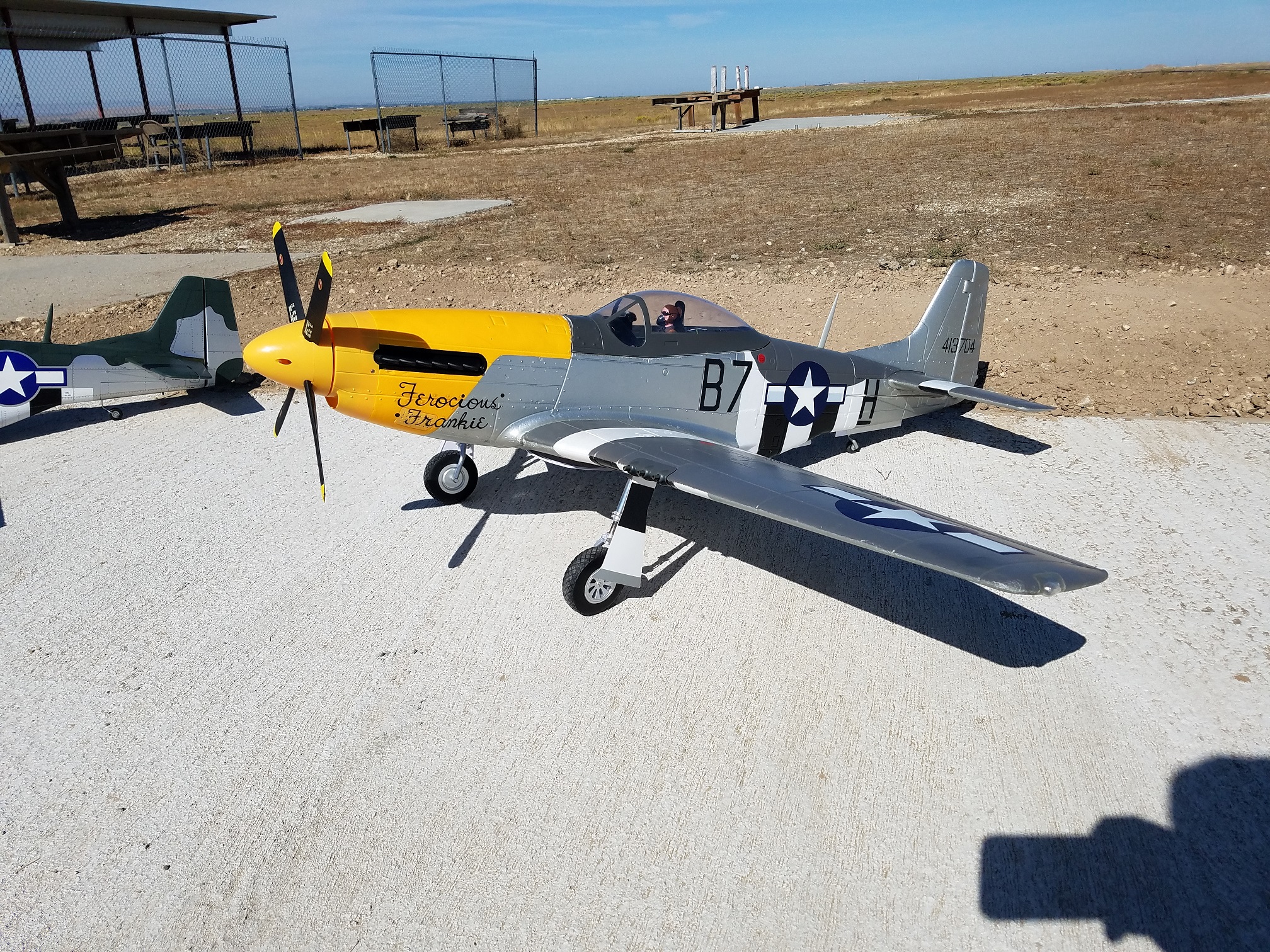 I also bought one of the new H9 20cc Mustangs. I installed an RCGF 20cc gasser and man that thing flew great. Well, that was "UNTIL" I pulled a tight loop too close to the ground. Yeah, not a pretty ending. See fellas? I can do dumb things too. LOL. Fortunately everything came through in perfect shape. Except the airframe. DOAH! I loved the plane so what did I do? Bought a second and put my brand new RCGF 26cc gasser in it. Dang does that thing flat scoot. So what does a guy with two little Stangs do? Well he takes them both to the field for some much needed sorties and pushing the enemy back behind enemy lines. LOL.