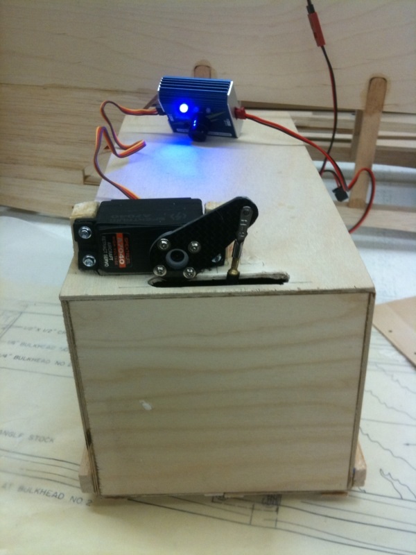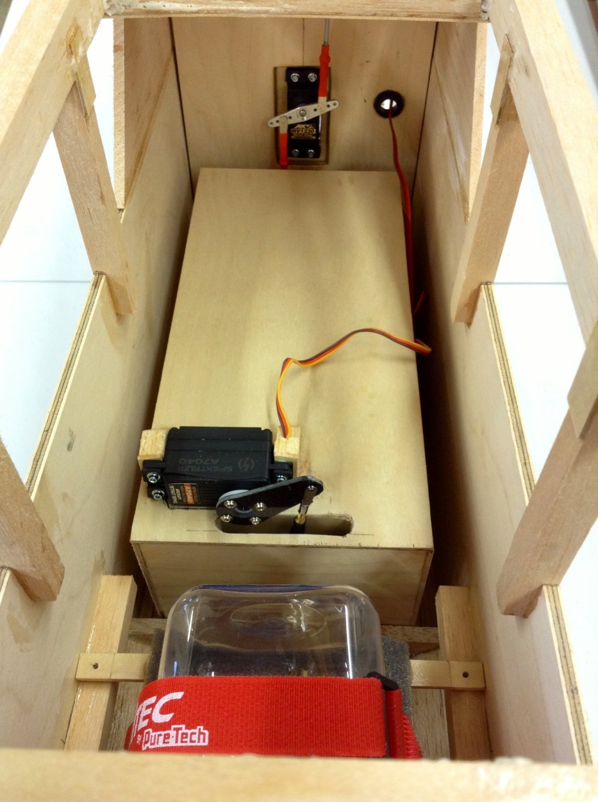 Neat setup. For what it's worth Mike, your cable drawn closure system is probably the easiest way to go. I used a Hitec HS 55 at each end of my box. One for each door. It worked pretty darn well, but oh my aching head. The geometry from solid links just about drove me coo coo.... It would either close all the way and not open all the way. Oooor.....it would open all the way and bind when closing. Grrrr...... Of course this was well before I understood completely how to use the programming in my radio. Once I got that nailed down, huh...what a piece of work. LMAO.