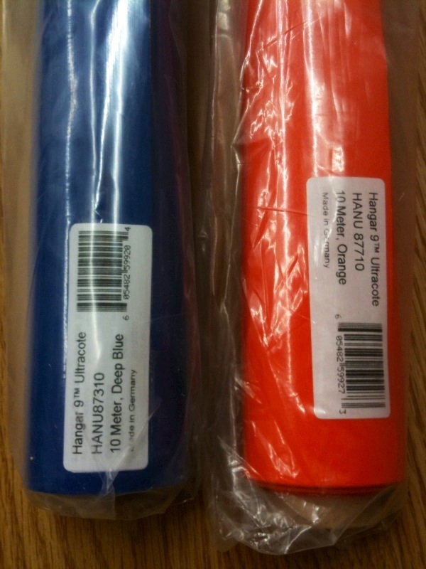 Finally settled on a color scheme. The limited selection of 10 meter rolls of Ultracote made my decision easier. Going with Orange and Deep Blue.