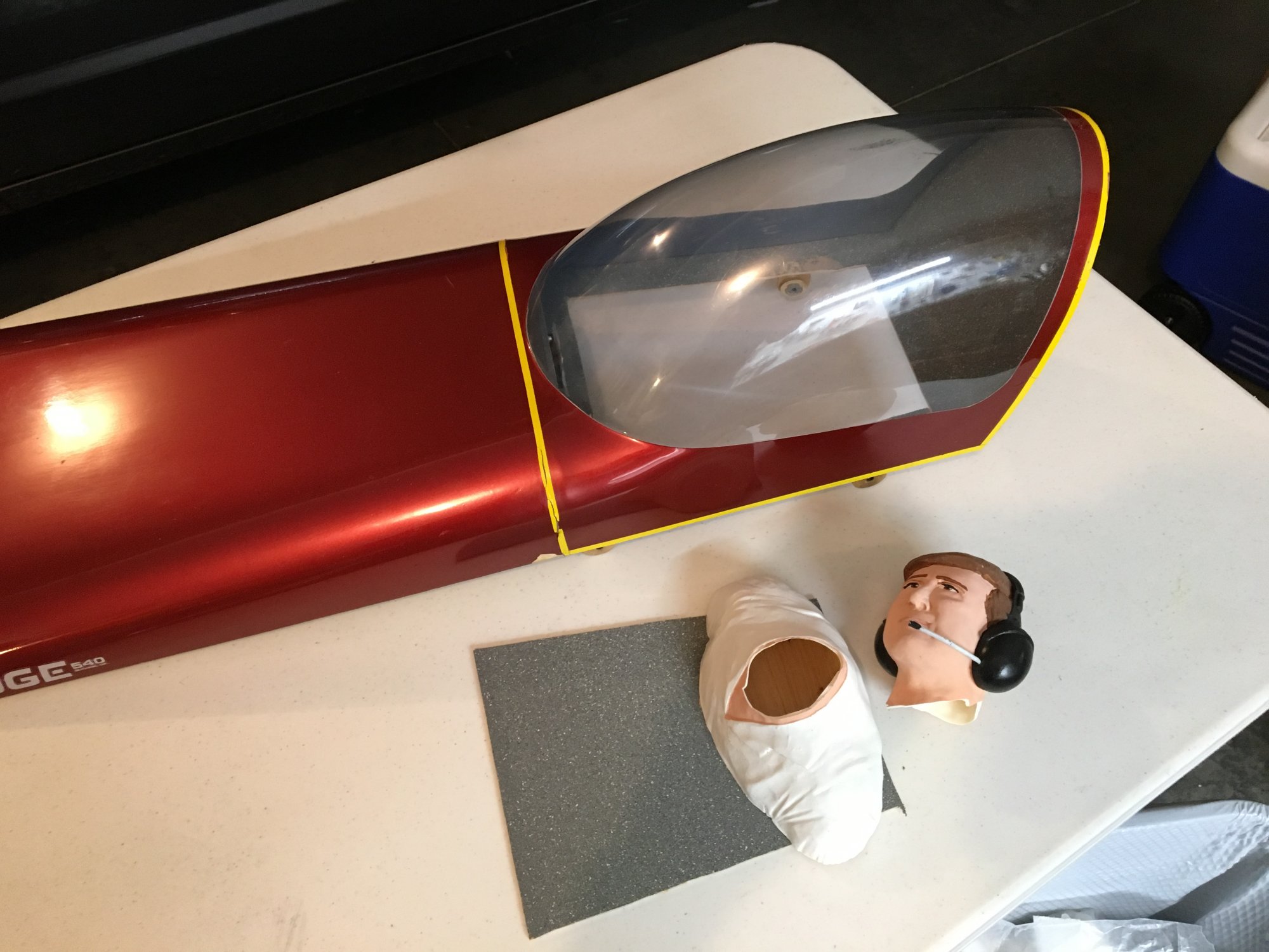 You could put him back in headlessWhen I bought the plane, the pilot head was cracked and he just couldn't handle the hard landing. So I cut him out. I just need to add some bracing. I also replied the canopy where it had came loose.