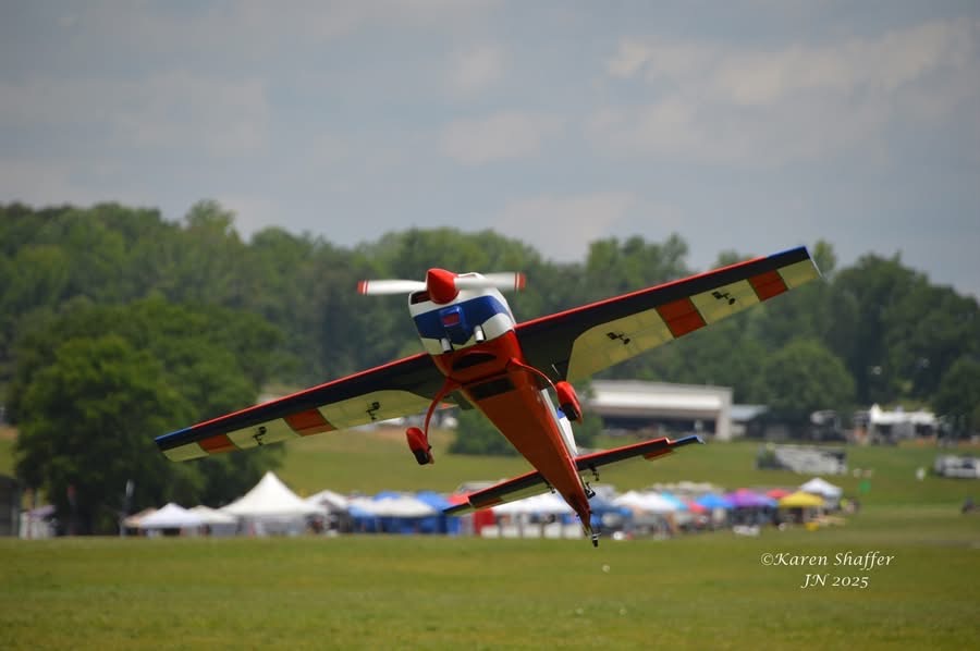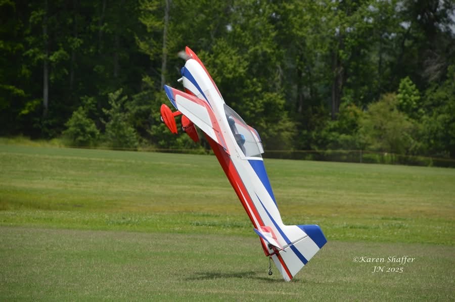 Not sure if it was this pic or not, but soon after my metal servo arm (with a pinch screw) sheared the teeth leaving my plane in a hard over rudder. I did a circle and landed it hard after using my kill switch. Broke the prop, bent the spinner back plate, damaged the left elevator hinge. Got some work to do but it will fly again.
