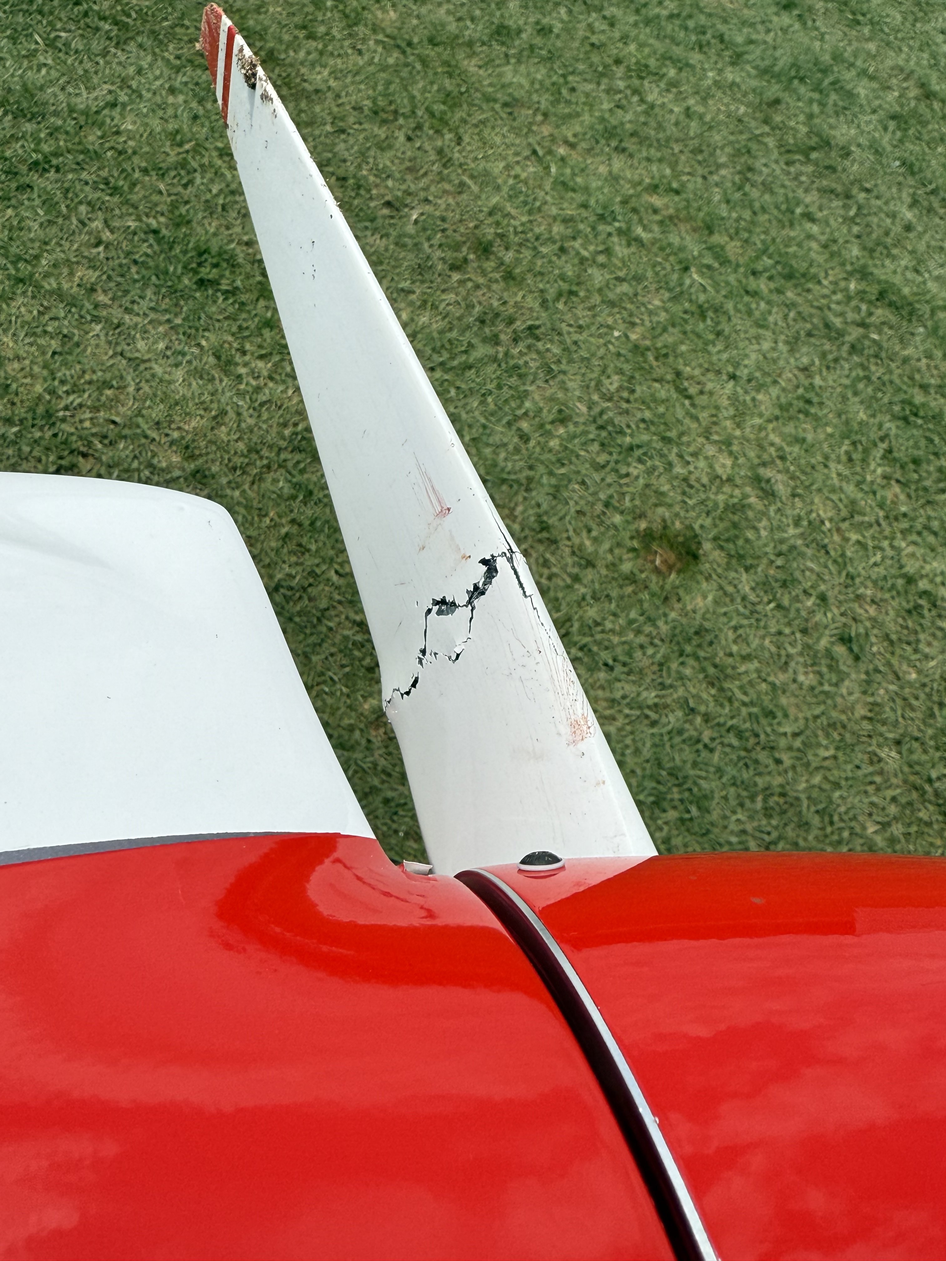 I was being very gentle with the tail touch, but a gust of wind pushed the plane down and over which I think really did it in. I get why we all dip our tails into the water now!
